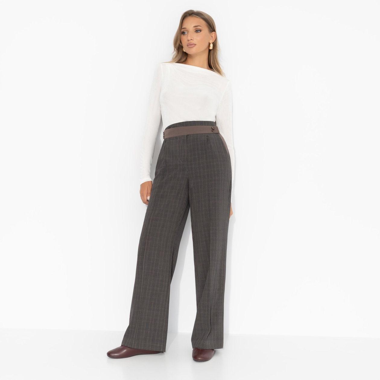 Брюки ЧАРУТТИ станут вашим талисманом карьерного повышения. Их безупречные выточки и идеальная линия кроя скажут о профессионализме и внимании к деталям ещё до того, как вы произнесете первое слово. Спокойный, но благородный оттенок ткани ассоциируется с надёжностью и стабильностью – именно теми качествами, которые ценит ваше руководство. Брюки прямого кроя. Материал изделия в тонкую клетку. Пояс из акцентного материала. Изделие с карманами.