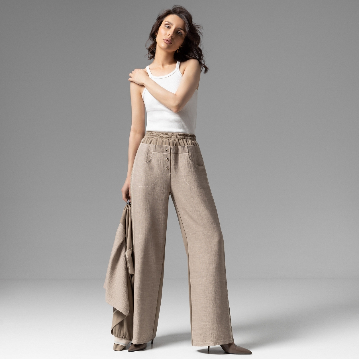 Экстравагантность и элегантность никогда не были еще настолько близко. Нетривиальный крой брюк выдаст вашу неповторимость. Струящийся материал подчеркнет длину ног и плавность походки. Движение только вперед. Брюки прямого кроя в комбинации нескольких видов ткани. Есть карманы. Акцентный крой с техникой наружных швов. Имитация многослойности. Использована фурнитура премиального качества. Пояс на резинке.