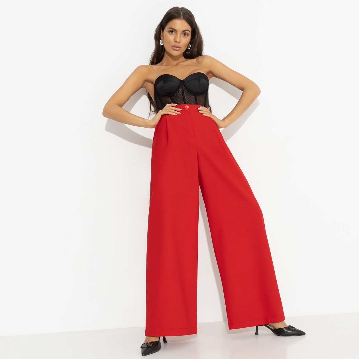 Важно не только сделать первый шаг к мечте, но и сделать его красиво. Ключевое решение запомнится надолго, если принять его в красных брюках CHARUTTI. Этот момент будет ярко смотреться в пересказе детям и внукам спустя много лет. Брюки широкие. Высокая посадка на талии. Изделие застегивается на молнию и пуговицу. Пояс дополнен резинкой для лучшего прилегания. Есть шлевки. Брюки с карманами.