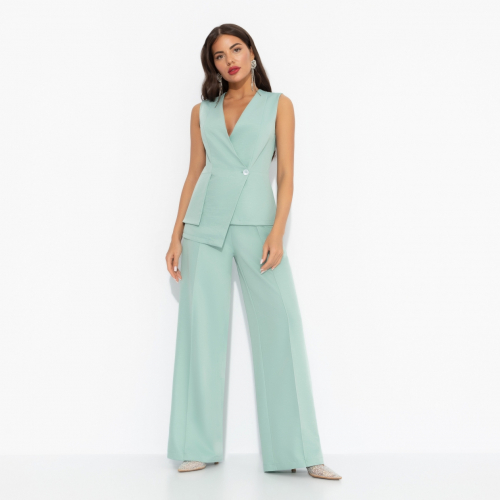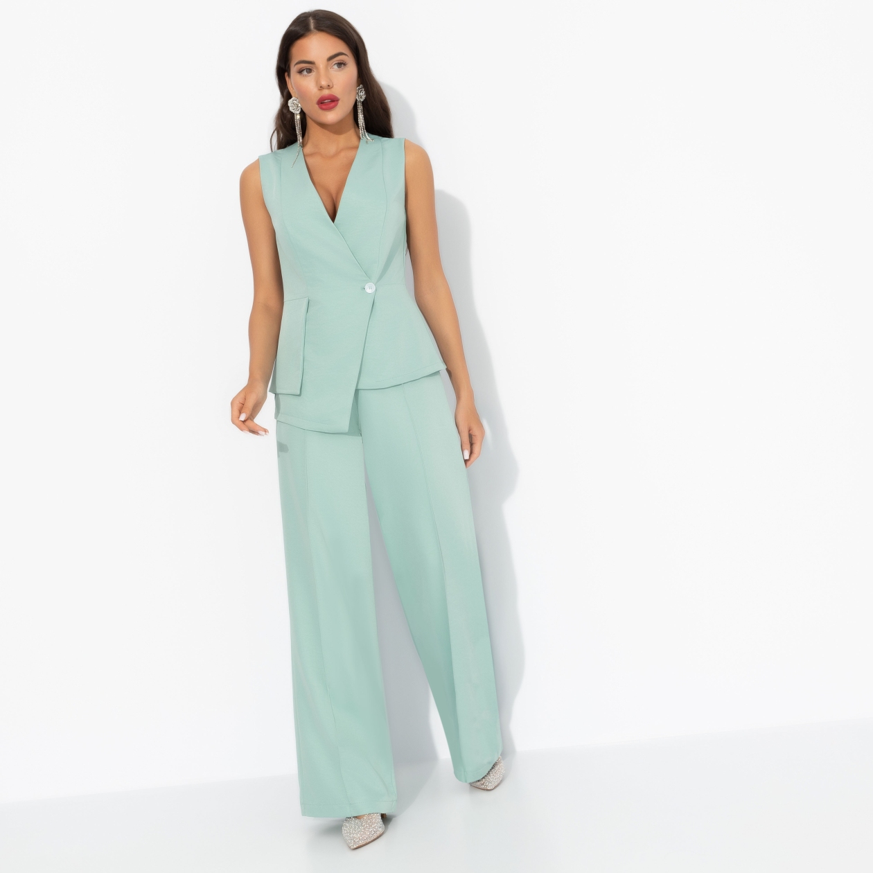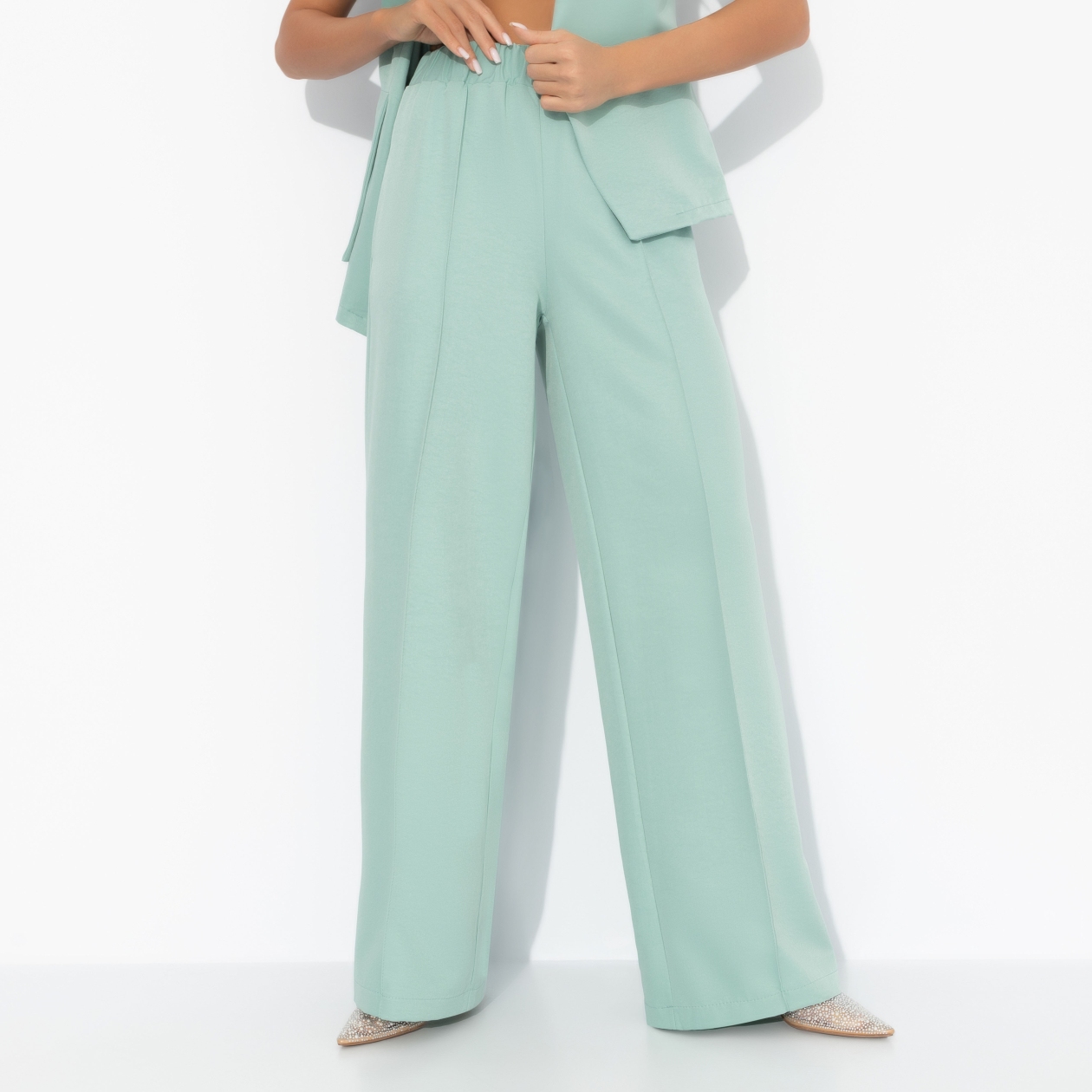 Ради интереса можно посчитать количество комплиментов, которые вы соберете в течение дня в мятных брюках от ЧАРУТТИ. Вопросы от женщин о месте приобретения засчитываем тоже. Брюки широкие, прямого кроя. Стрелки на брюках прошиты. Посадка на талии. Пояс оформлен широкой скрытой резинкой. Изделие с карманами.