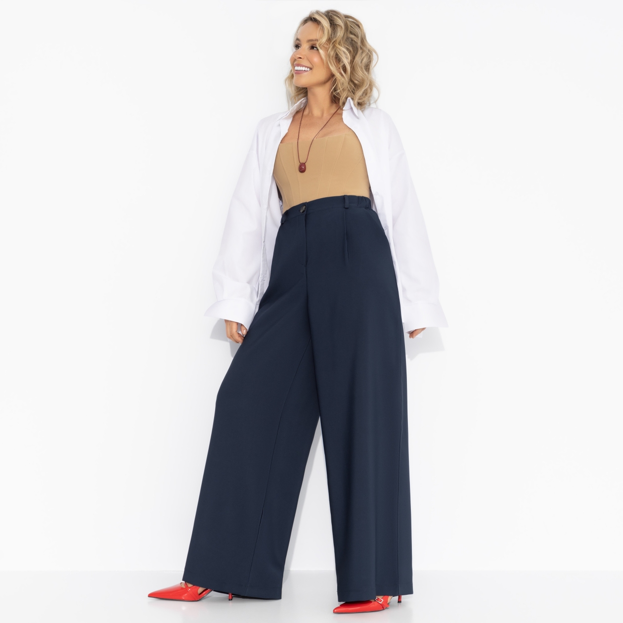 Брюки ЧАРУТТИ станут спасением в череде бесконечных дел. Утром надевайте их с лаконичным пиджаком на важную встречу, а вечером, добавив шелковый топ, отправляйтесь на свидание. Мода десятилетиями твердила, что идеальный крой — это баланс: брюки скрывают то, что нужно, и подчеркивают то, что хочется выделить, создавая силуэт, одинаково уместный и в офисе, и на вечеринке. Брюки широкие с карманами. Посадка высокая на талии. Деликатные защипы в верхней части изделия формируют элегантный силуэт. Брюки застегиваются на пуговицу и молнию. Есть шлёвки.