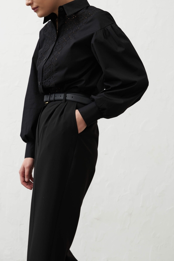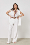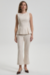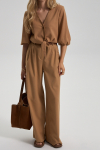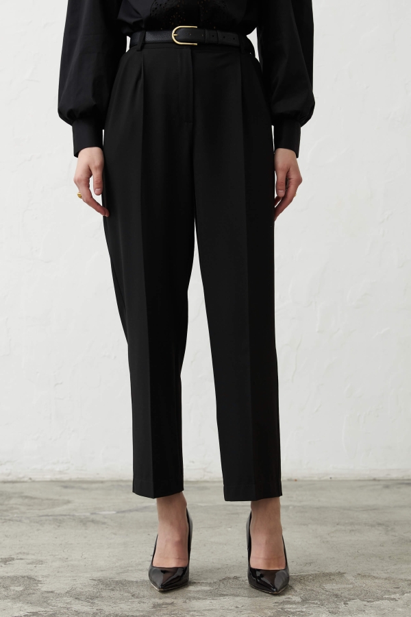 Комфортные брюки из костюмной поливискозы. Модель заужена к низу, на притачном поясе. По спинке эластичная резинка для комфортной посадки. По переду боковые карманы, стрелки. Застежка на молнию.