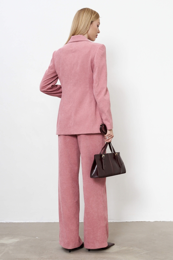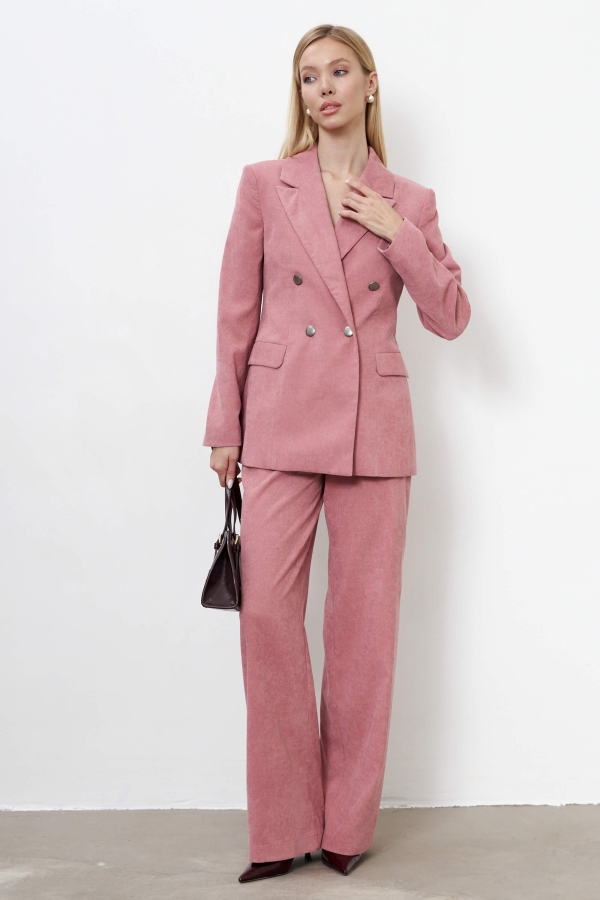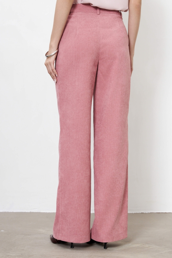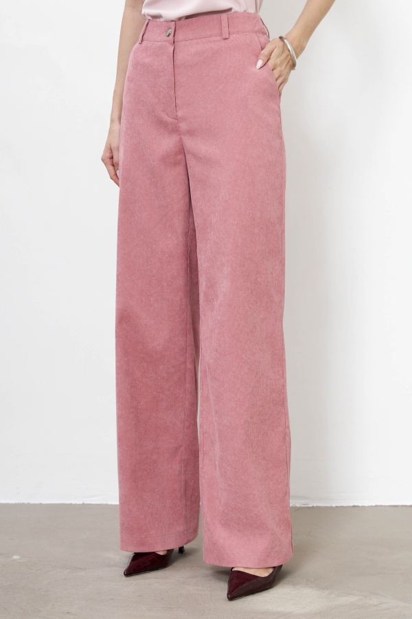 Комфортные брюки из вельвета. Модель прямого силуэта. По переду гульфик, карманы. Изделие на поясе, с застежкой на пуговицу.
