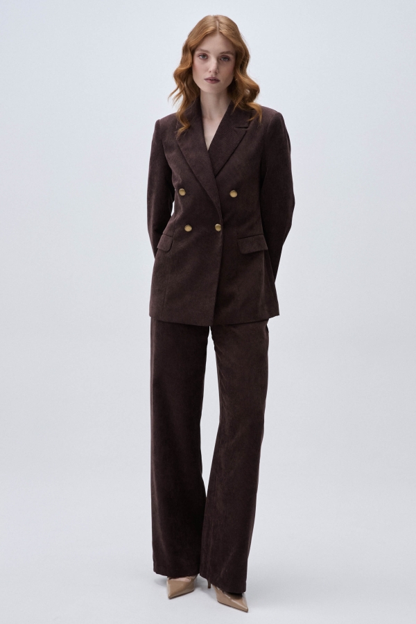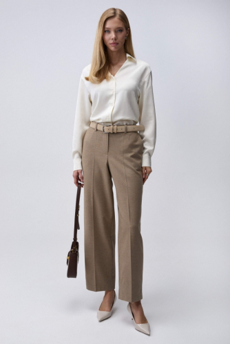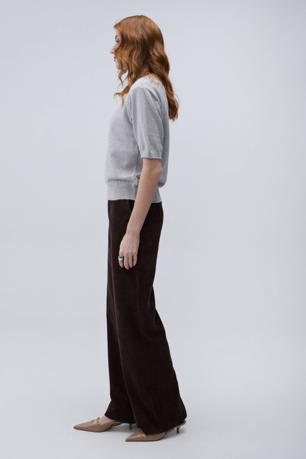 Брюки средней посадки из вельвета. Модель прямого силуэта с притачным поясом со шлевками. По переду классические карманы. Застежка - гульфик.