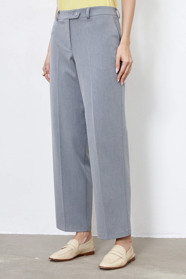 Классические брюки средней посадки. Модель укороченная, на средней посадке. Брюки прямые и слегка зауженные к низу. По переду гульфик, застежка на молнию и пуговицу.