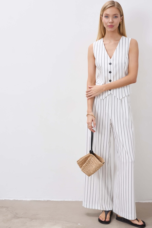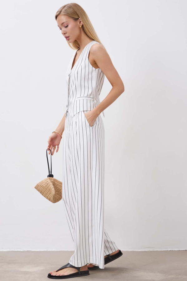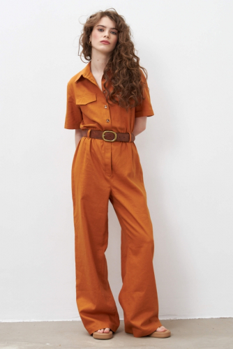 Брюки-палаццо из костюмной поливискозы. Прямые свободные брюки с высокой посадкой. Модель расширена к низу, со шлевками и боковыми карманами.