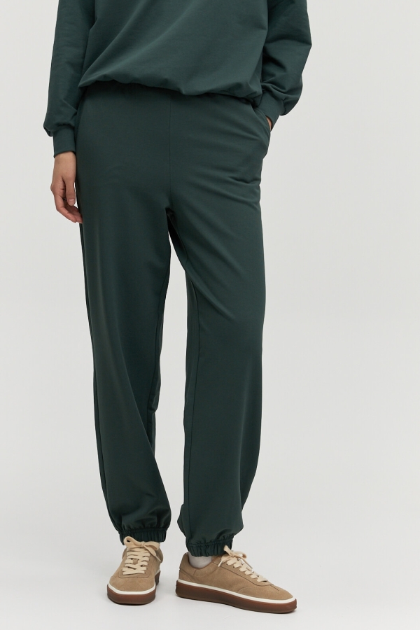 Джоггеры из трикотажного полотна 2-х нитка. Модель свободная и комфортная, на внутренней резинке по талии и по низу изделия.