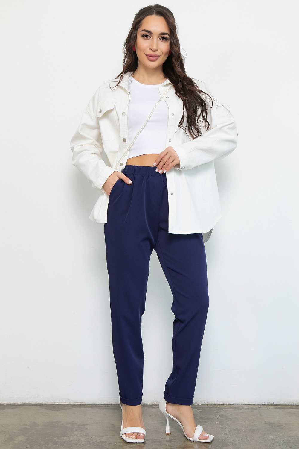 Брюки хорошо сочетаются с нашей рубашкой “Мишель” и футболкой “Базовая”