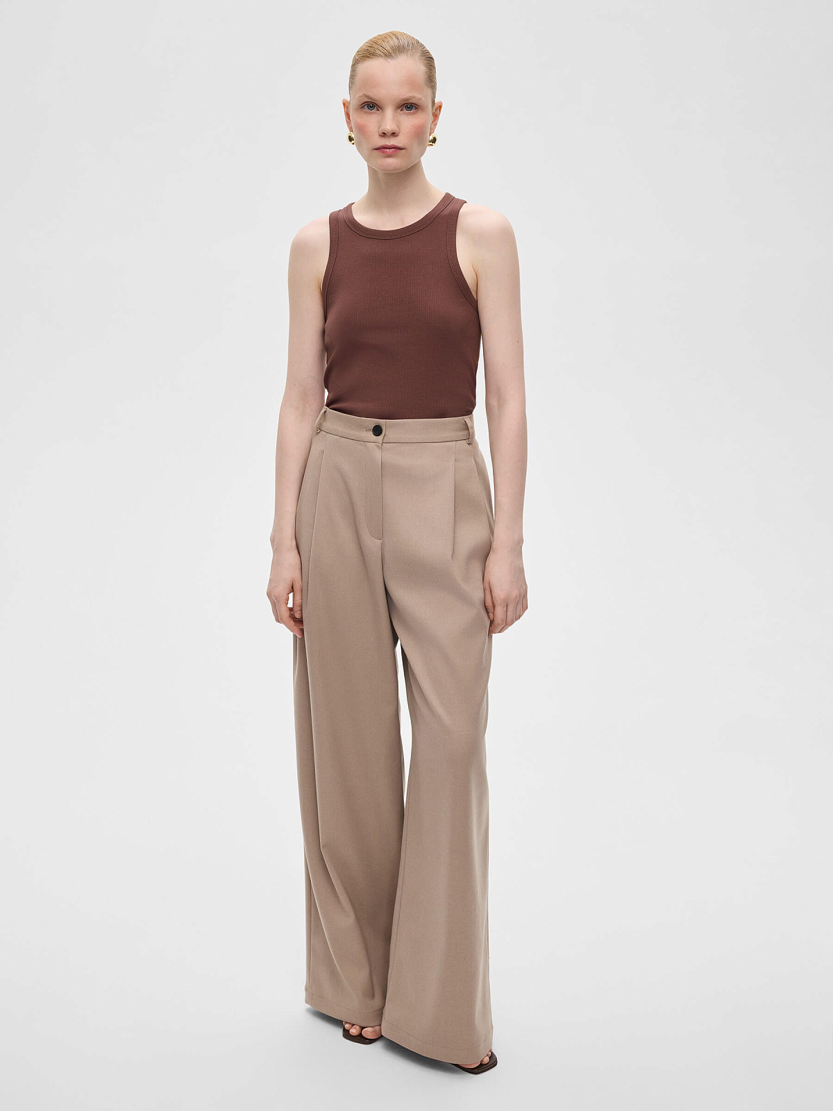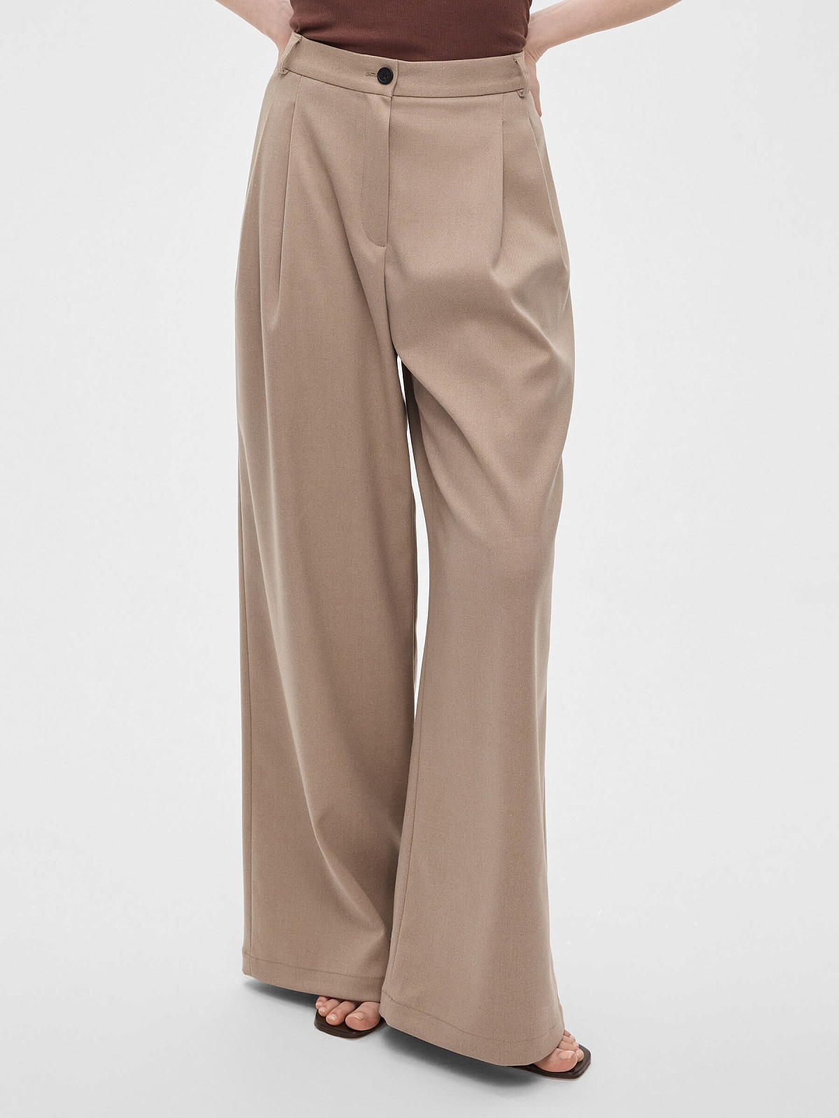3011р5475рБрюки широкие с защипами, серо-бежевый