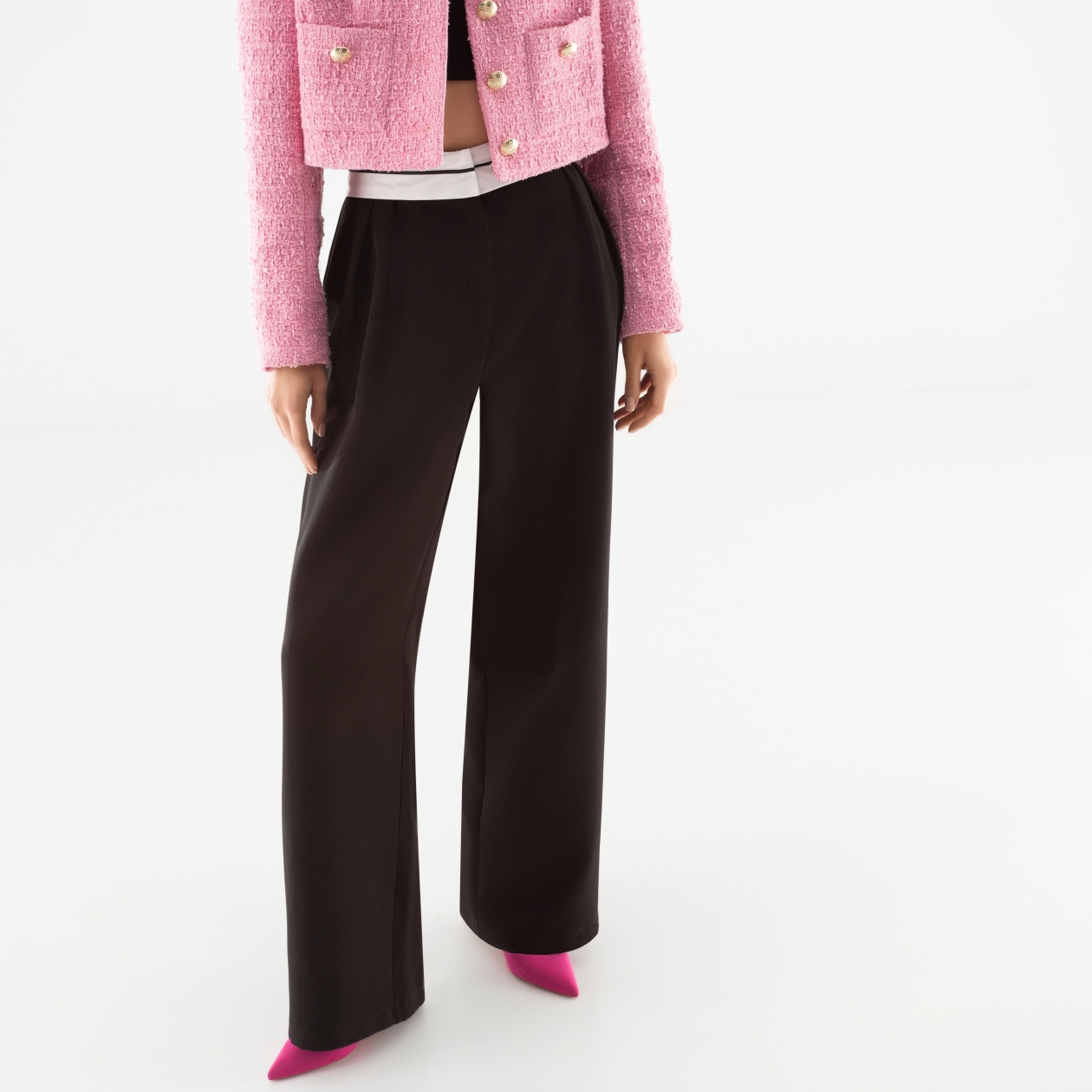 Брюки «Стильная действительность» из ткани «барби» (60% п/э, 37% вискоза, 3% спандекс) — идеальный выбор для вашего оптового бизнеса. Эти брюки отражают самые горячие тренды моды и предназначены для тех, кто стремится быть первым. Брюки с акцентным отворотом в премиальном исполнении подчеркнут стиль высокого полёта и предоставят вашим клиентам непревзойдённое качество.