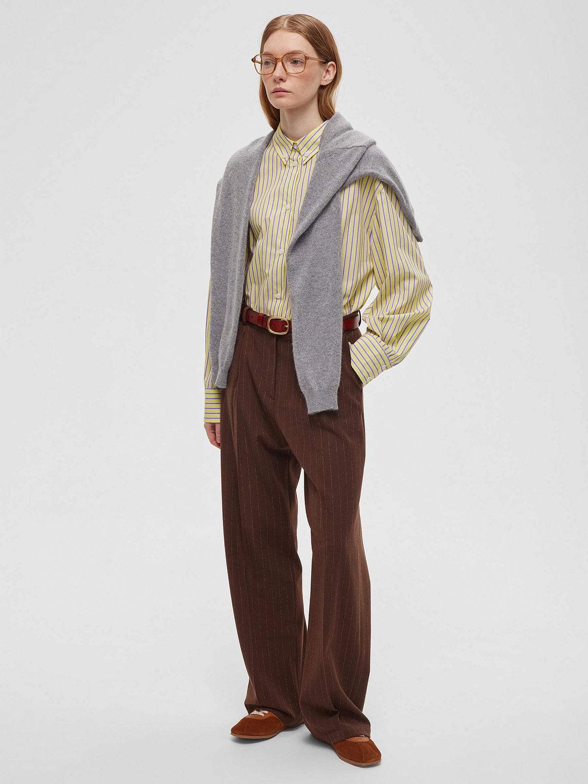 2379р4475рБрюки свободного кроя в полоску 0185, коричневый