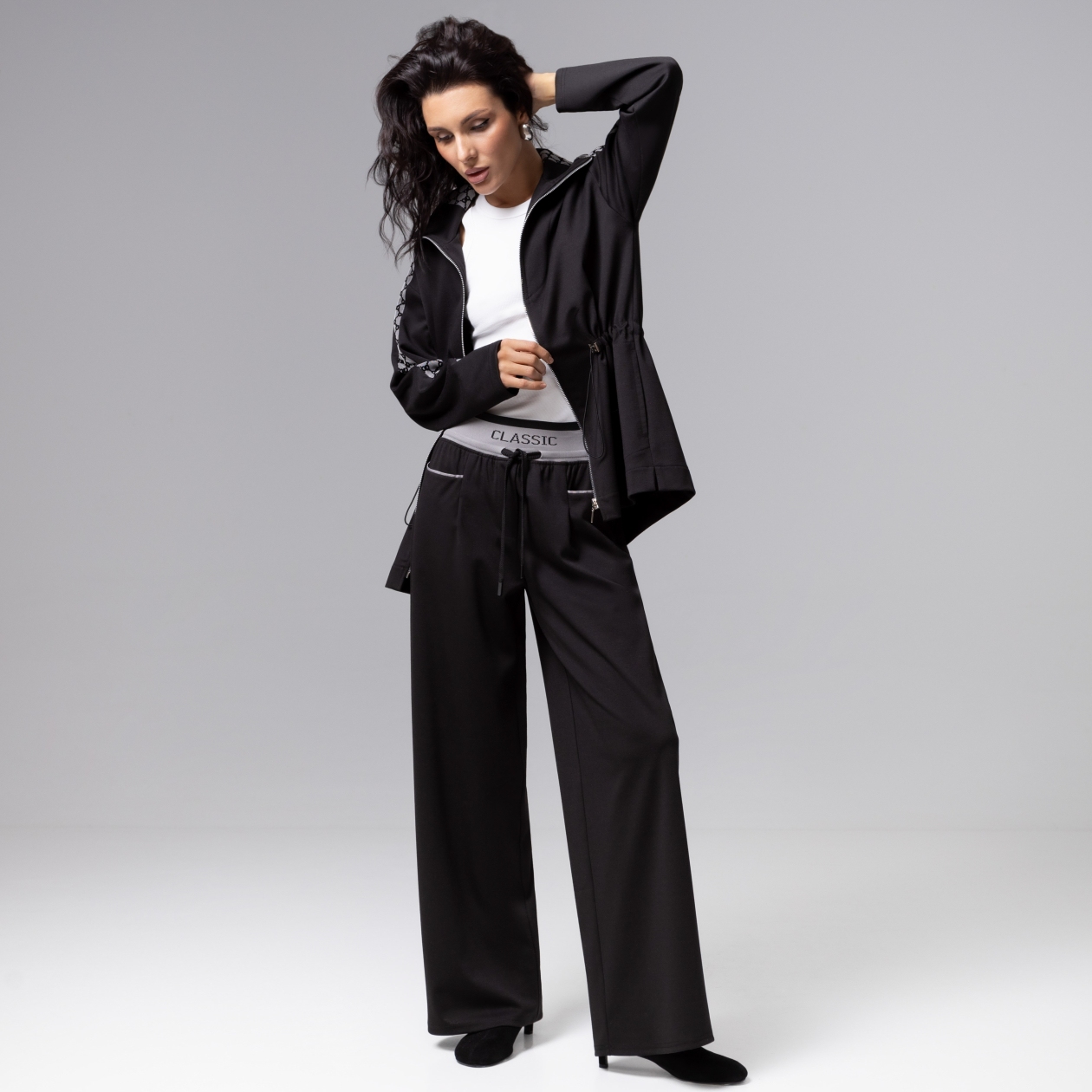 Они подчёркивают независимость, элегантность и умение быть разной: строгой, смелой, женственной. Брюки коллекции PREMIUM выглядят так, будто у них есть собственный менеджер по стилю. Широкая трикотажная резинка на поясе обеспечивает максимальный комфорт, одновременно добавляя современный акцент и сохраняя безупречную посадку. Изделие с карманами.