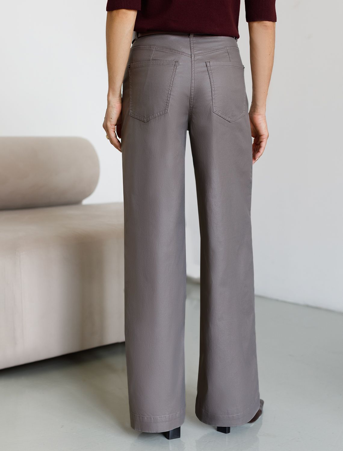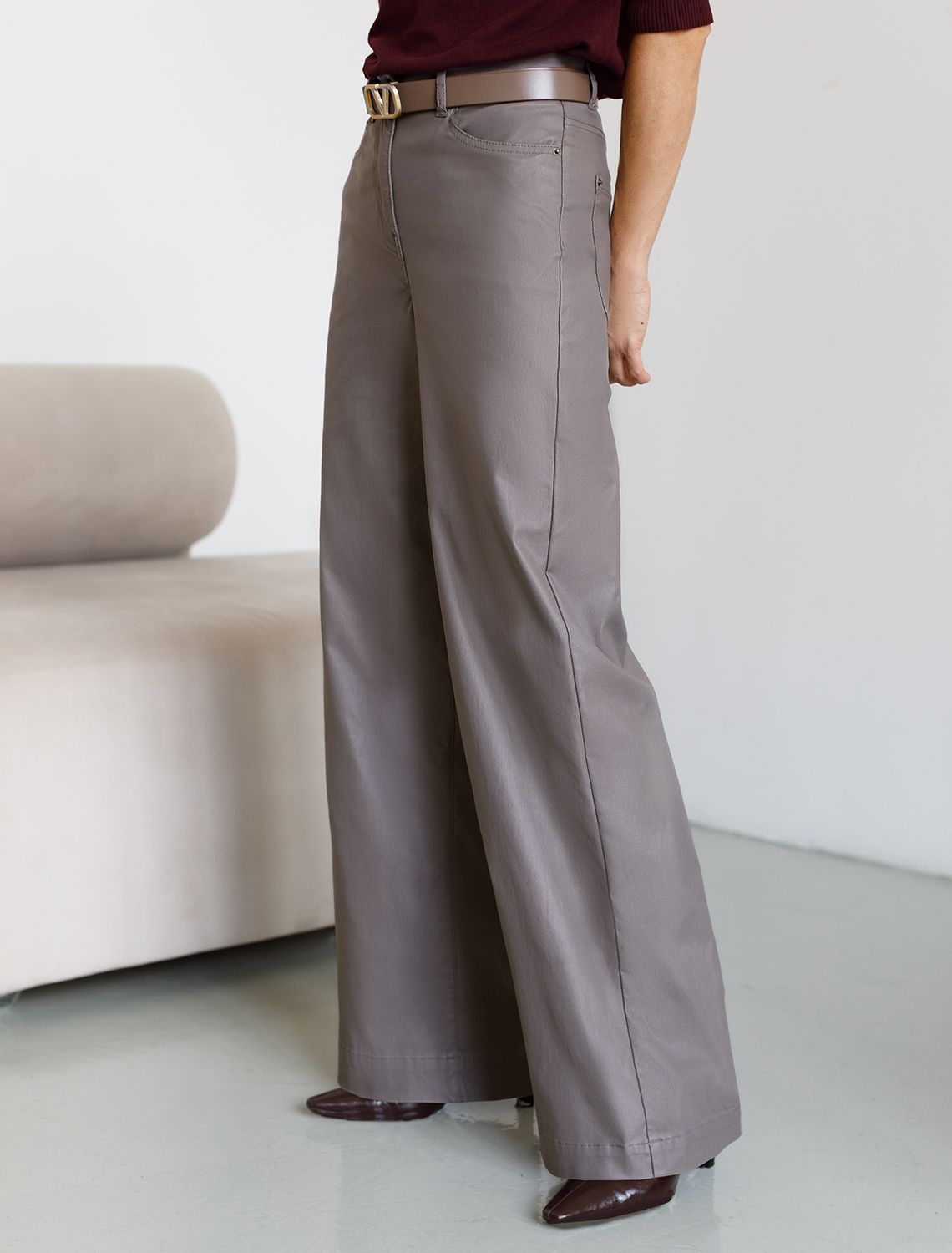 Универсальная модель для базового гардероба. Прямой свободный крой по всей длине создает сдержанный силуэт, идеальный для офиса и повседневной носки. Плотный хлопок с эффектом кожи обеспечивает комфорт и элегантный внешний вид. Классическая высота пояса гарантирует удобство, а минималистичный дизайн делает эти брюки отличной основой для деловых образов. Сочетайте с рубашками и жакетами для офиса или с простыми топами для повседневного стиля. Практичный материал сохраняет форму и не требует особого ухода. Коричневый цвет легко впишется в любой гардероб.