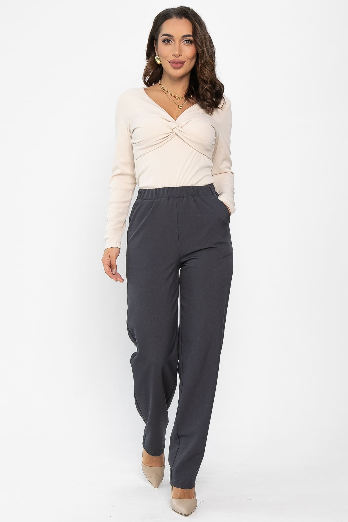 Классические брюки в красивом оттенке графит помогут вам в создании изящных официальных образов. Брюки по талии оснащены резинкой, что позволяет добиться комфортной посадки по фигуре. В боковых швах есть карманы. Брюки подойдут для офисного и повседневного образа. Они не сковывают движений и выглядят стильно и лаконично, вам останется только подобрать верх.