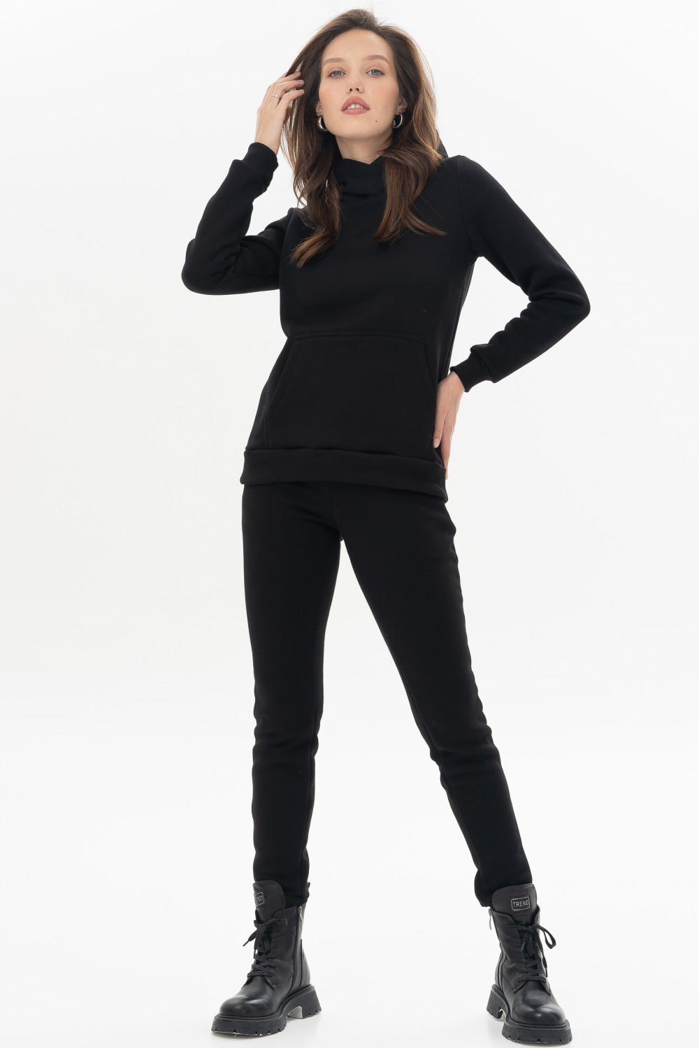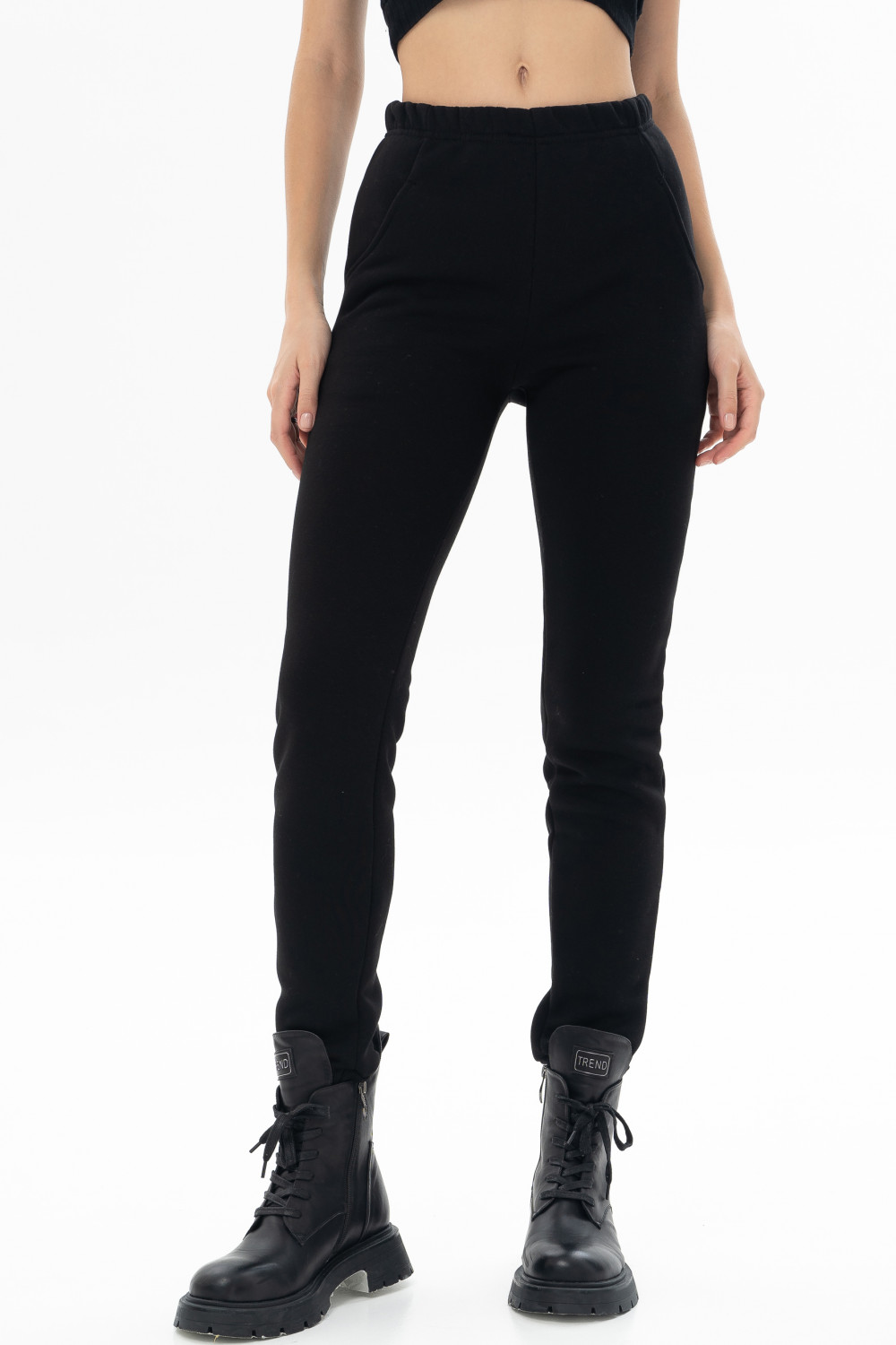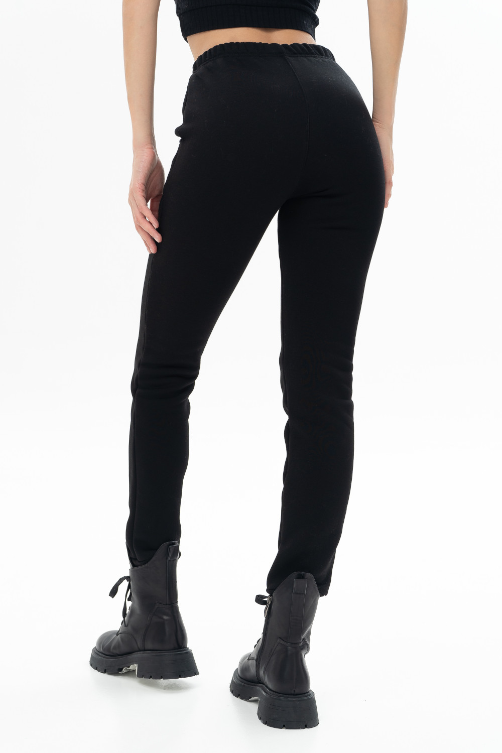 Утепленные брюки выполнены из хлопкового футера с начёсом. Брюки со средней посадкой, с карманами и манжетами по низу. Модель универсальна и сочетается, как с толстовками, свитшотами, так и с футболками.