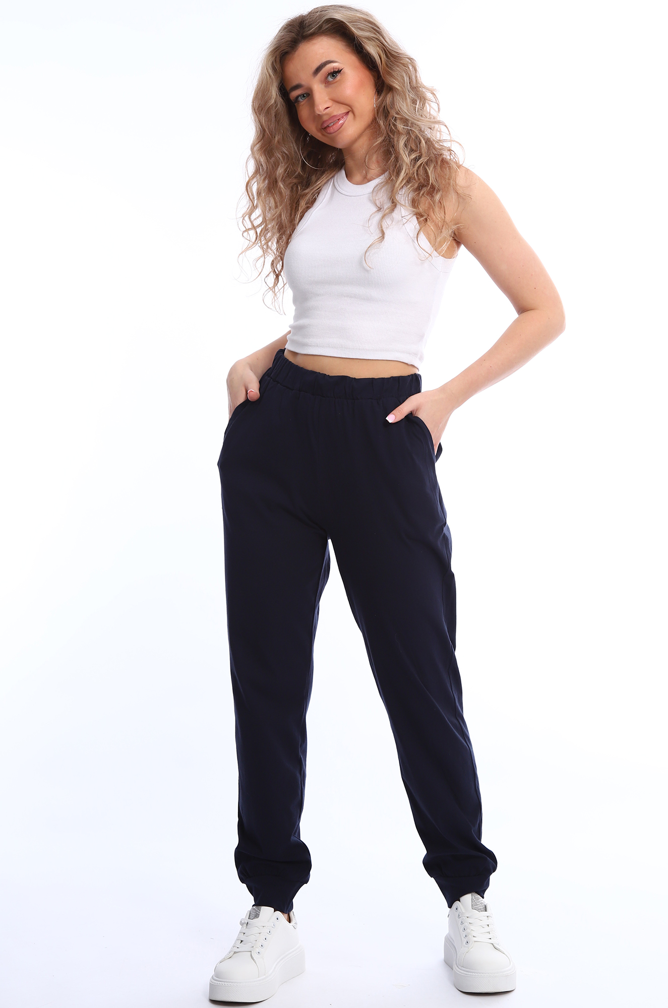 Однотонные хлопковые брючки с боковыми карманами, снизу на манжете, пояс на широкой резинке. Брюки комфортной посадки, отлично сидят на любой фигуре.