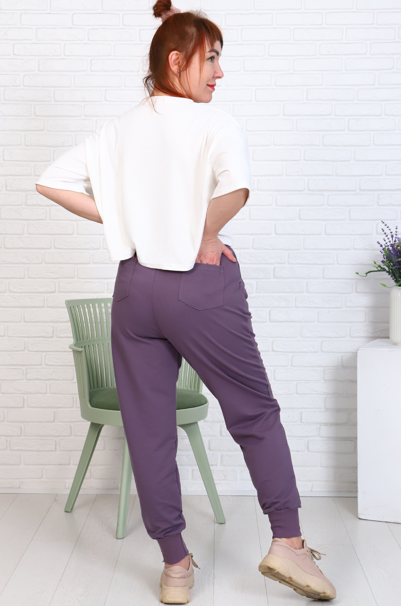 Эффектные спортивные брючки свободного кроя - это идеальный вариант для прогулок. Идеальная, очень комфортная посадка, пояс на широкой резинке, с защипами, простроченный на спец. машине. Удобные карманы боковые и накладные сзади, снизу модель на высоком эластичном манжете.
