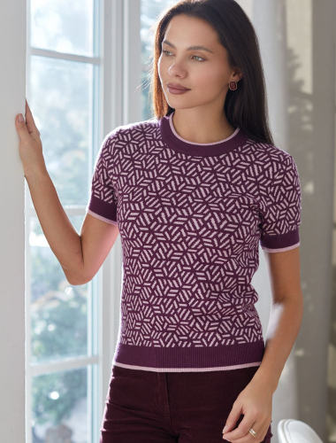 Рост 172, бюст 88, талия 64, бедра 88 Джемпер жаккардовой вязки выполнено из нежной пряжи на основе вискозы с добавлением кашемира. Модель прямого силуэта с застежкой планкой как у поло. Фигурные золотистые пуговицы вносят изысканности и роскоши. Изделие приятно ощущается на теле и поддерживает комфортный микроклимат. Сочетается в комплекте total-look с жакетом D31.150
