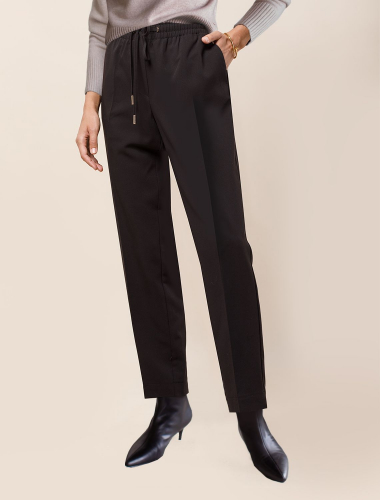 Рост 172, бюст 88, талия 64, бедра 88 Брюки выполнены из премиальной поливискозы. Модель дополнена поясом на резинке с регулируемым шнурком. Изделие хорошо подойдет как для строгого делового образа с блузкой и жакетом, так и для более расслабленного с футболкой и водолазкой. Эластичный материал изделия поддерживает оптимальный микроклимат, формоустойчивость и комфорт в течение всего дня.