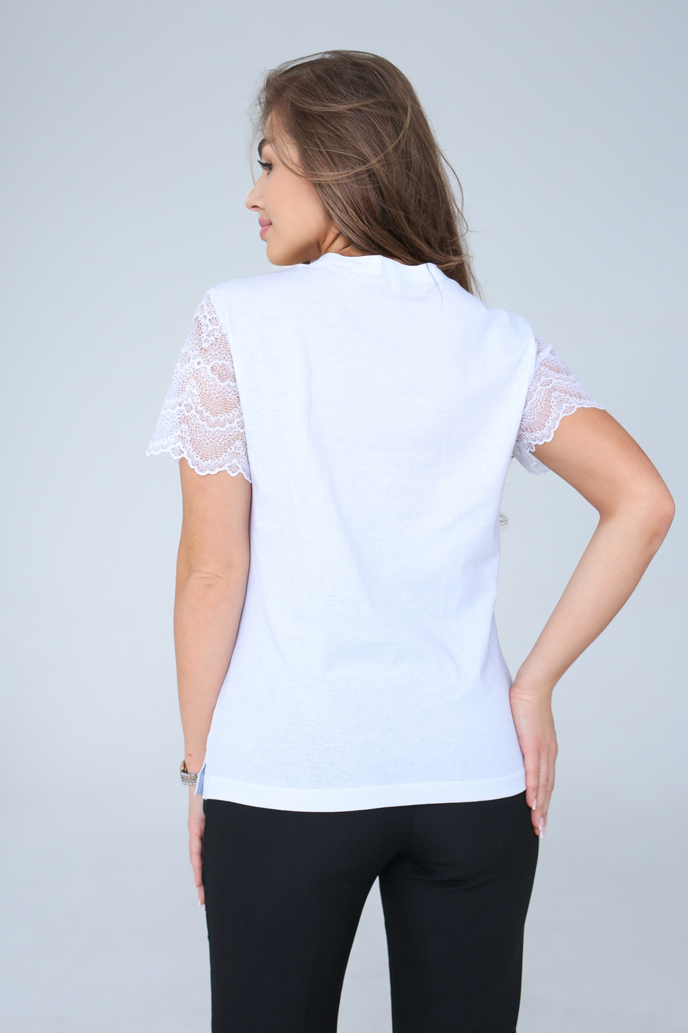 Просторная женская футболка из хлопка для тех, кто любит ощущать свободу во всём. Заботливо сшитая их нежнейшего эластичного трикотажа с кружевными рукавами, она не стесняет движений, тем самым добавляя нотку расслабленного шика. Лаконичный дизайн футболки с кружевом, подойдет для повседневной носки в качестве одежды для дома, сна, отдыха и на прогулку. Цвет: белый;черный; Материал: полиэстер;полиэстер; Состав: 95% ПЭ, 5% эластан.