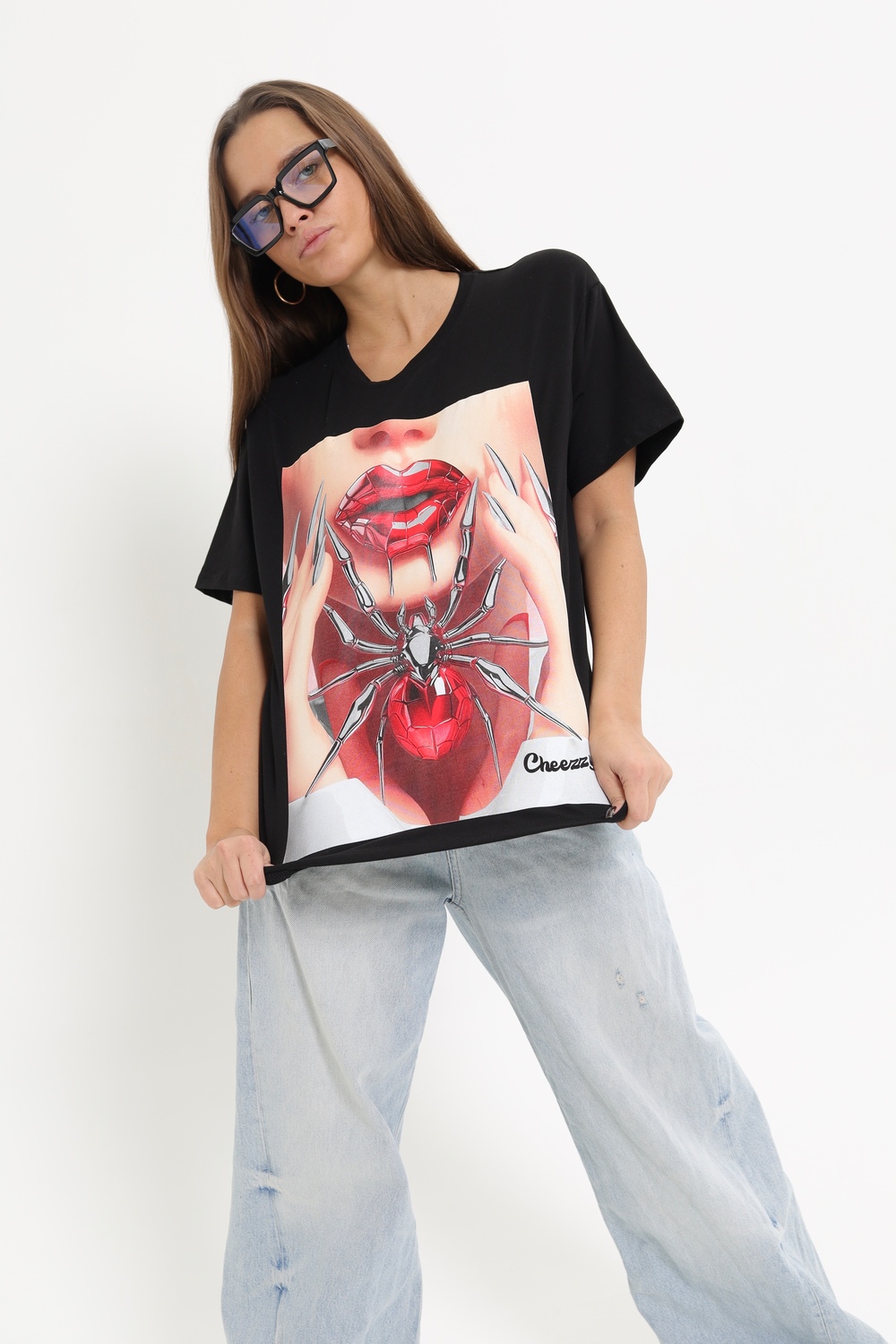 Футболка женская с принтом от бренда Cheezzy - это идеальный выбор для тех, кто ценит комфорт и стиль в повседневной или вечерней одежде. Этот элегантная футболка женская изготовлена из высококачественной ткани, что обеспечивает не только приятную на ощупь мягкость, но и долговечность материала.