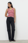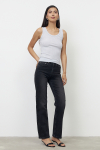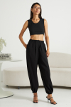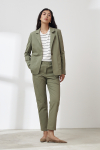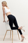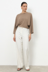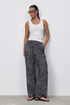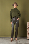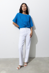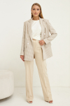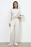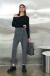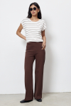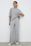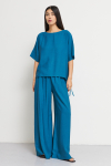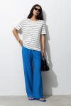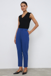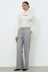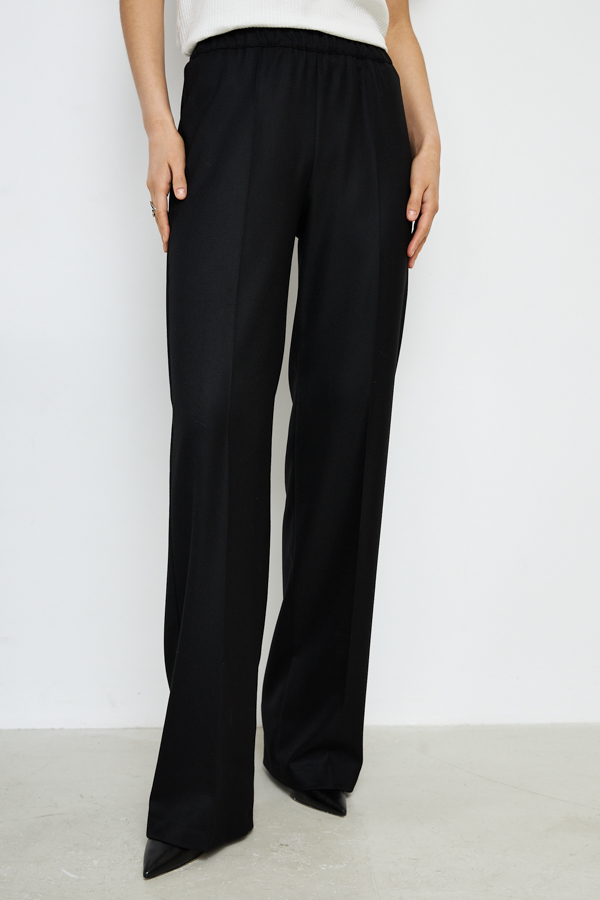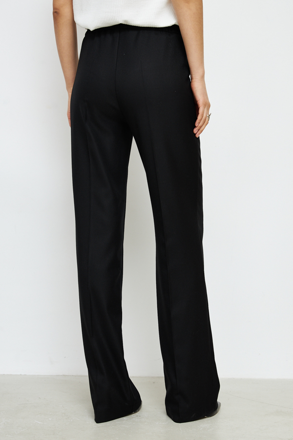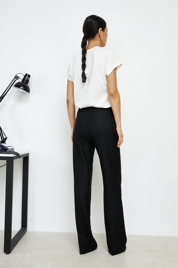 Брюки прямого силуэта из костюмной ткани. Пояс притачной с эластичной резиной.