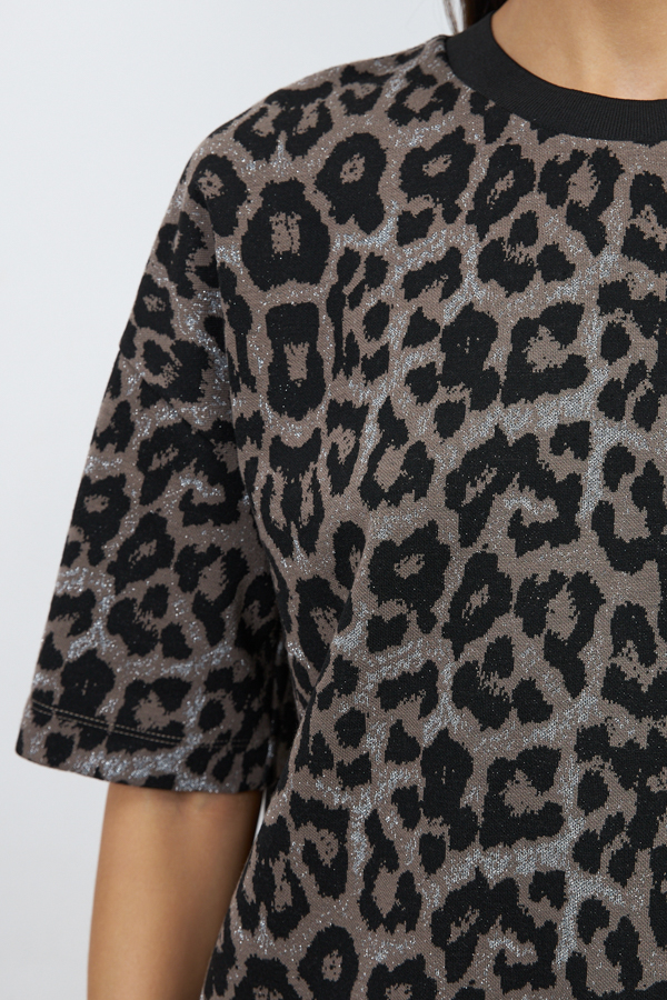 Джемпер свободного силуэта со спущенной линией плеча и рукавом до локтя выполнен из эластичного полотна. Вырез горловины оформлен подвязом. В таблице размеров представлены параметры человека, а не изделия.