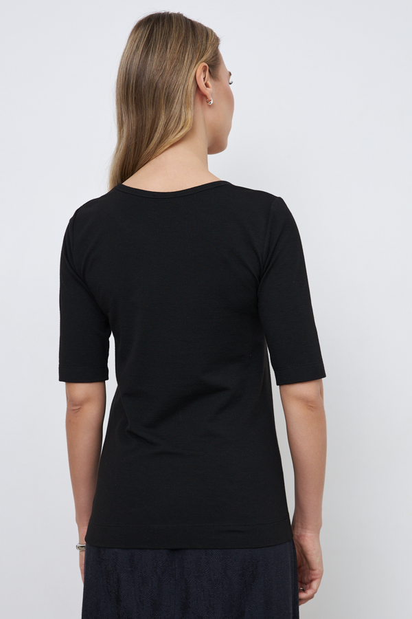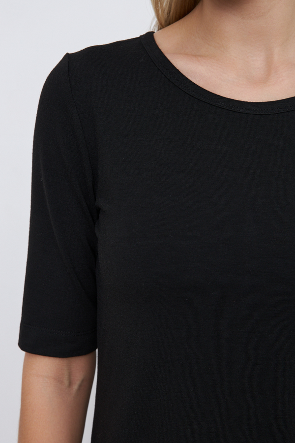 Джемпер из эластичного полотна прилегающего силуэта. Втачной короткий рукав. Круглый вырез горловины окантован эластичной бейкой. Женский джемпер стал незаменимой и популярной разновидностью одежды, которая может применяться буквально во всех случаях жизни.