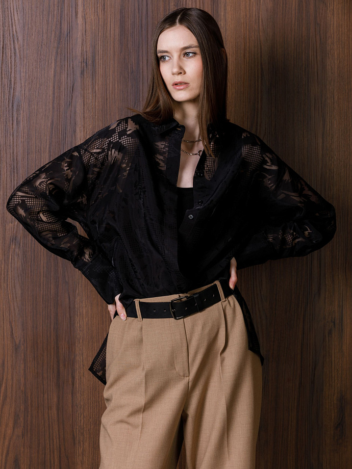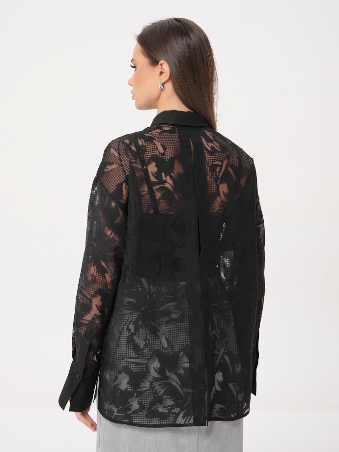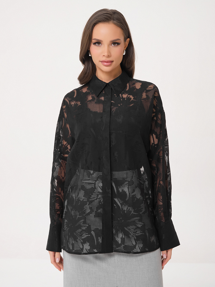 Блузка из органзы с вытравной печатью. Вытравная печать сохраняет дышащие свойства текстиля. Даже при носке одежды в жару кожа дышит.