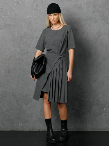 Модель прямого силуэта, со спущенным плечом. Горловина обработана бейкой.