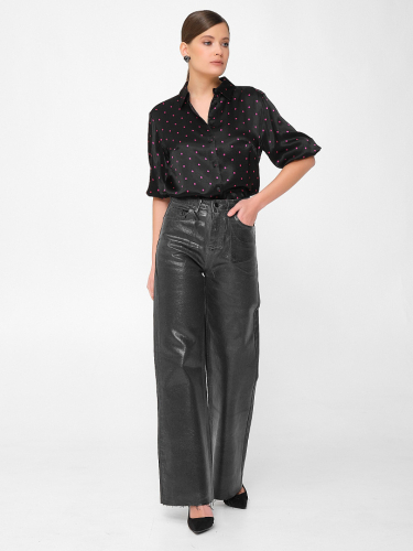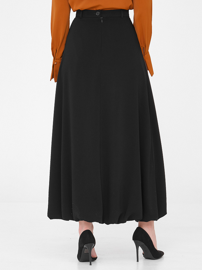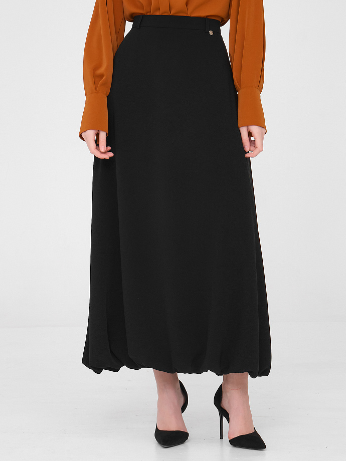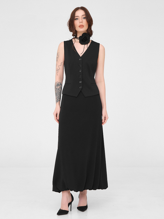 Модель на притачном поясе, со шлёвками. Сзади в среднем шве застёжка на потайную молнию и пуговицу на поясе. Ремень и цветок в комплект не входят.