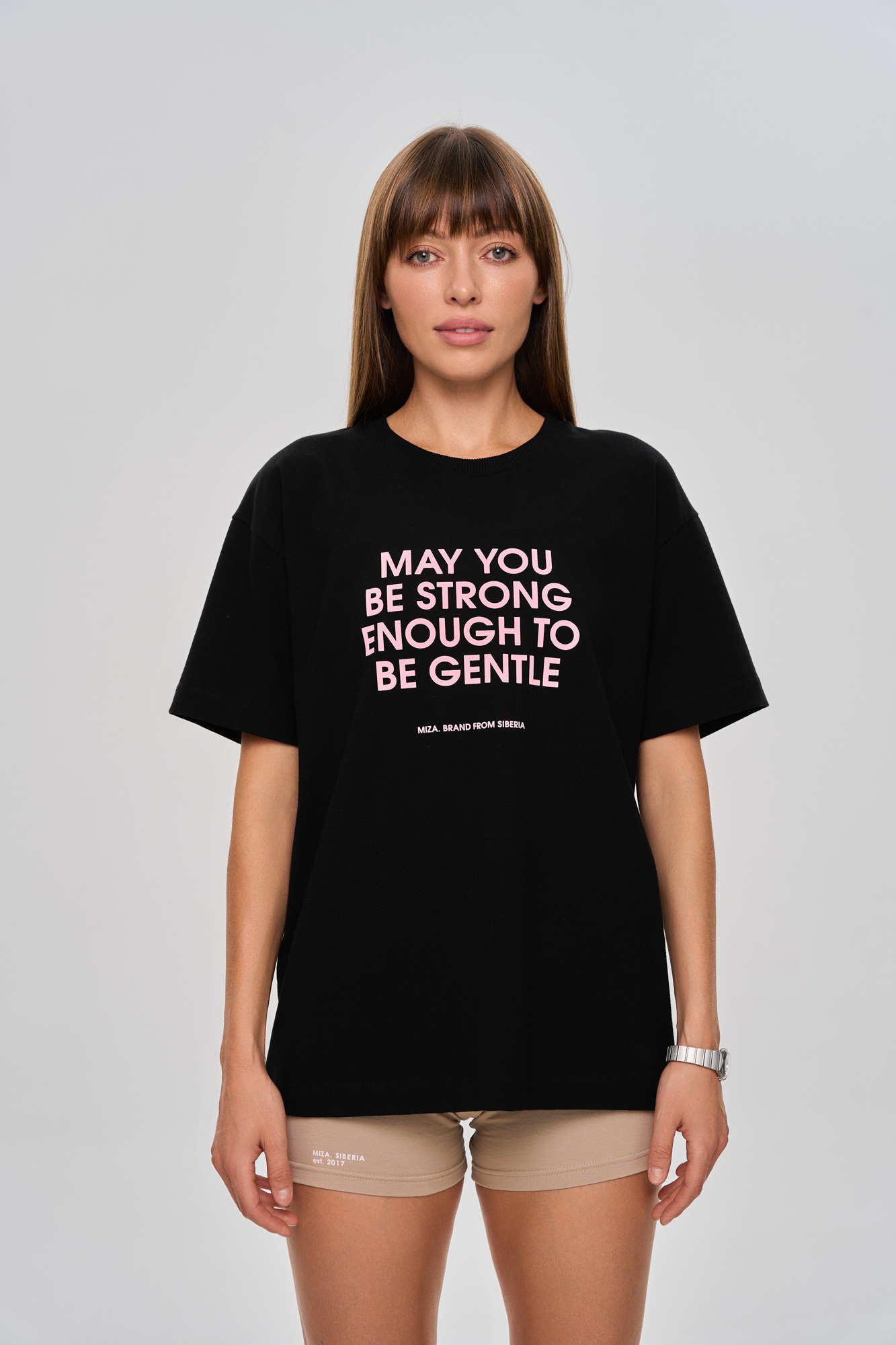 Футболка свободного кроя, выполнена из хлопкового трикотажа, содержащего эластан.