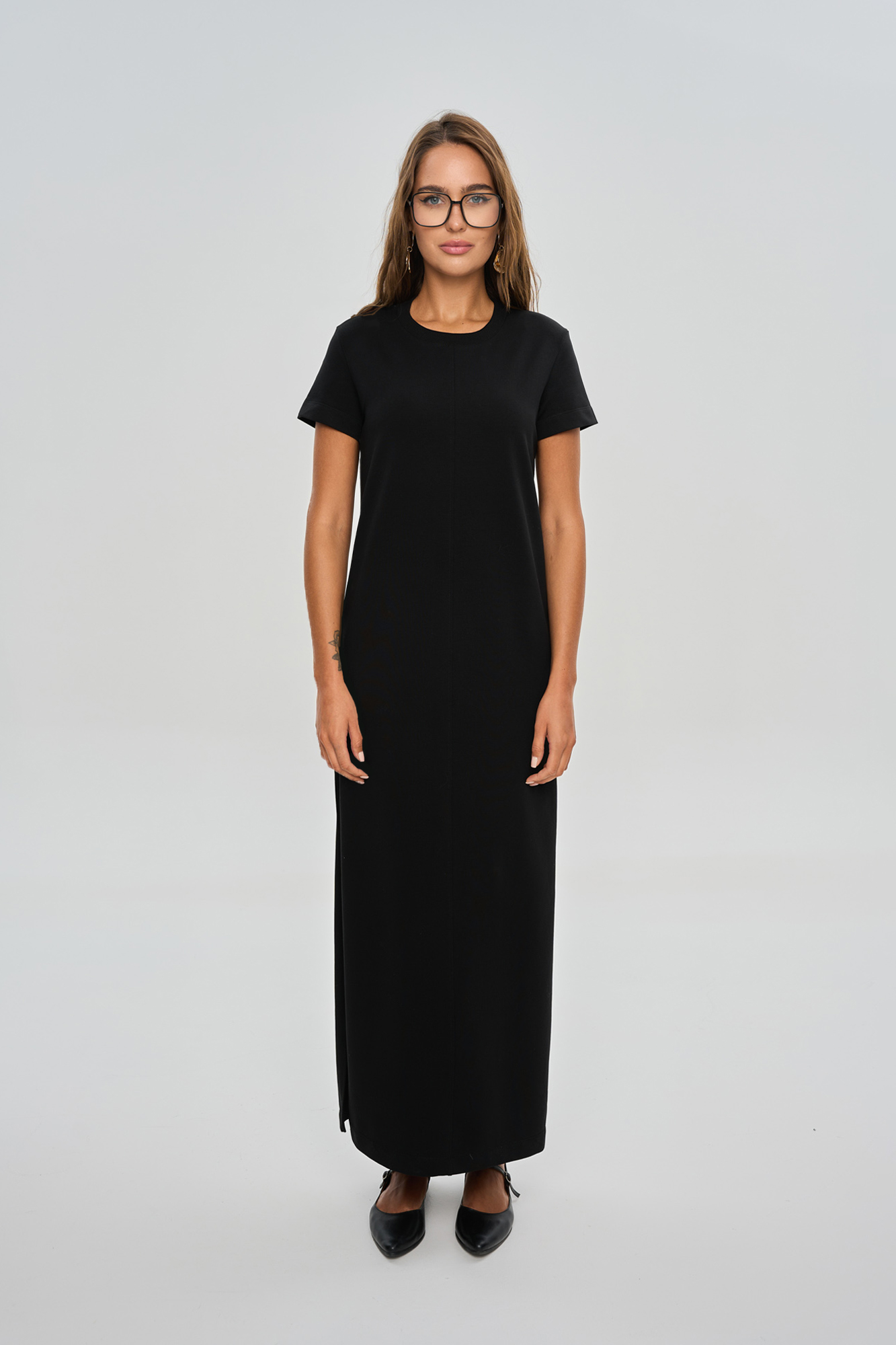Минималистичное платье прямого кроя в длине макси с втачным рукавом.