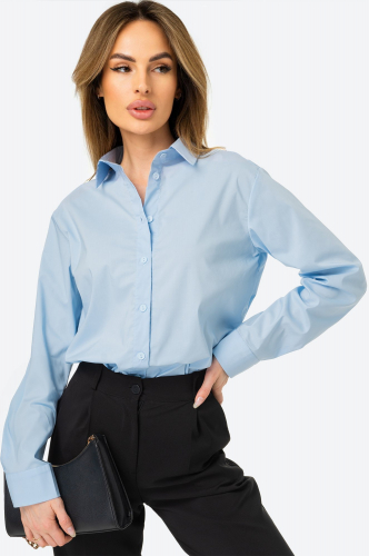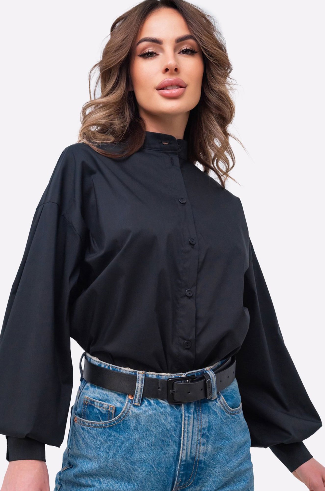 Женская рубашка оверсайз выполнена из натурального хлопка. Воротник-стойка и интересный спущенный рукав-фонарик с изящными манжетами выгодно выделяют рубашку для женщин среди других моделей. Благодаря свободному крою однотонная рубашка подходит женщинам с любым типом фигуры.