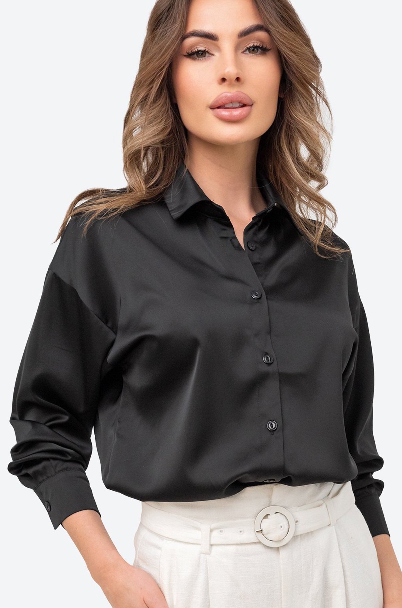 Элегантная женская блузка оверсайз с длинным рукавом выполнена из качественной ткани японский шелк. Благодаря широкому размерному ряду и свободному крою однотонная рубашка черного цвета позволит чувствовать себя женственно и уверенно девушкам с любым типом фигуры.