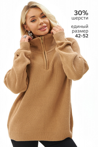 Женский свитер оверсайз с воротником с..показатьтойкой на молнии — уютный элемент гардероба, который гармонично сочетает комфорт и стильные акценты.