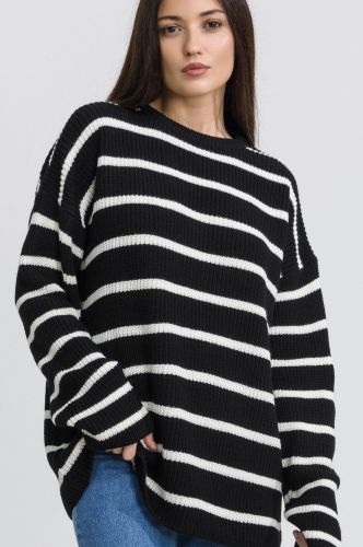 Свободный крой со спущенной линией плеча создаёт просторный силуэт, в котором можно двигаться, как хочется! Свитер оверсайз (oversize) – только легкость и максимальное удобство. Ворот защитит от прохладного ветра.