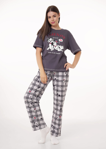 Набор одежды из хлопкового трикотажного полотна. Футболка прямого кроя, короткий втачной рукав, округлая горловина с обтачкой. Спереди принт. Шорты с поясом на внутренней резинке. Спереди имитация гульфика с пуговицами Боковые карманы с отрезным бочком.