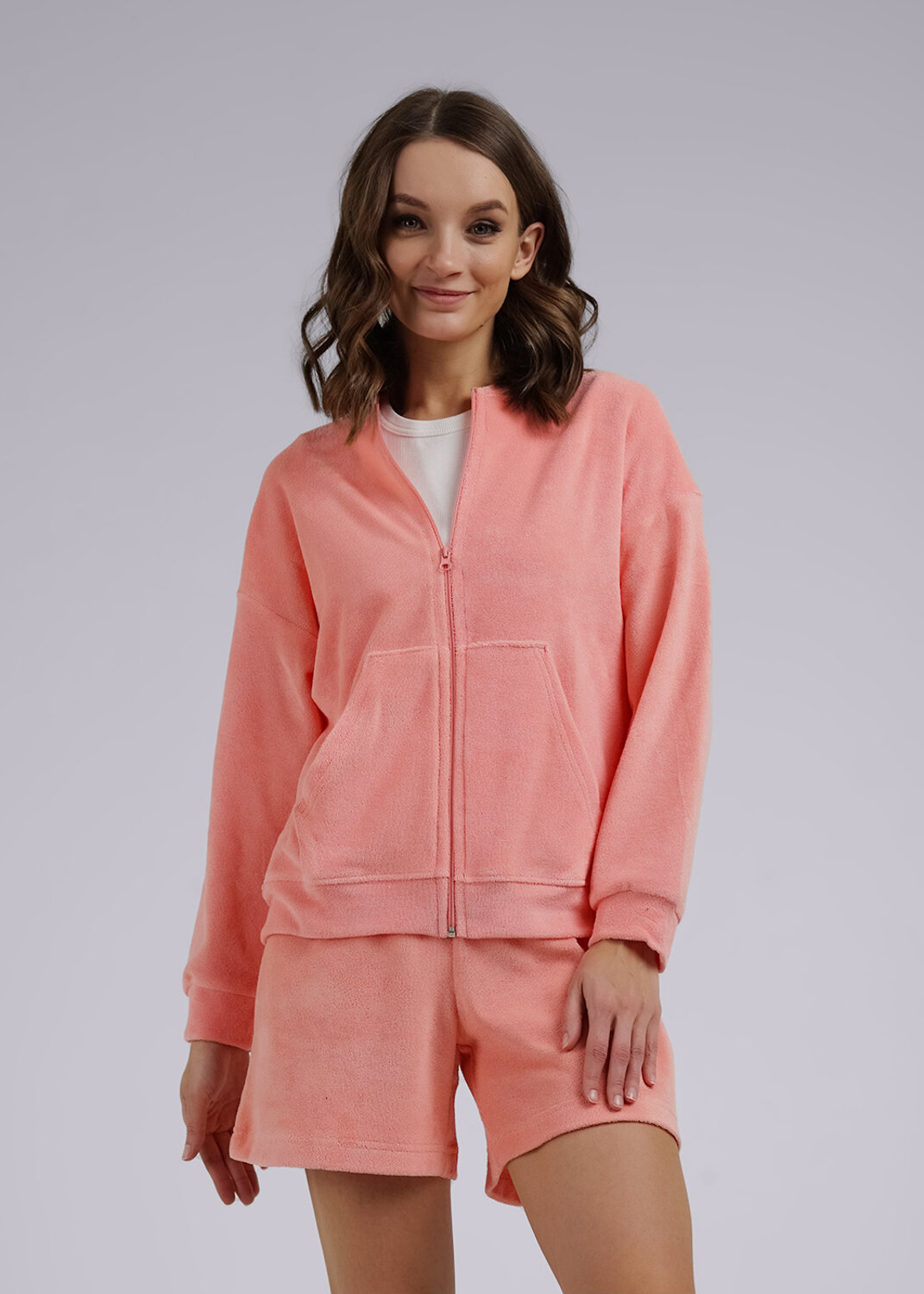 Стильный бомбер на молнии, дополненный карманом "кенгуру" актуальная модель для летних прогулок. Натуральный состав придает комфорта в носке, сводобный силуэт не сковывает движений.