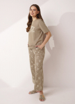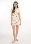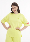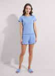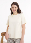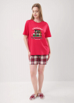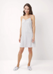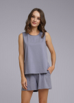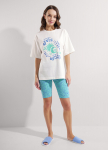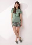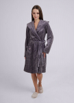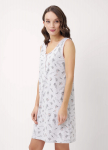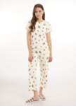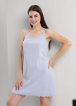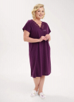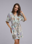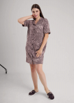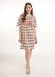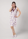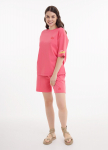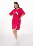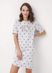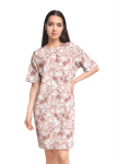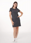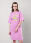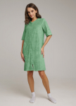 Платье для дома и одыха из хлопкового трикотажного полотна. Короткий цельнокроеный рукав, по низу рукава широкий манжет. Округлая горловина с обтачкой. Накладные карманы. На спинке кокетка. Спереди термонашивка.
