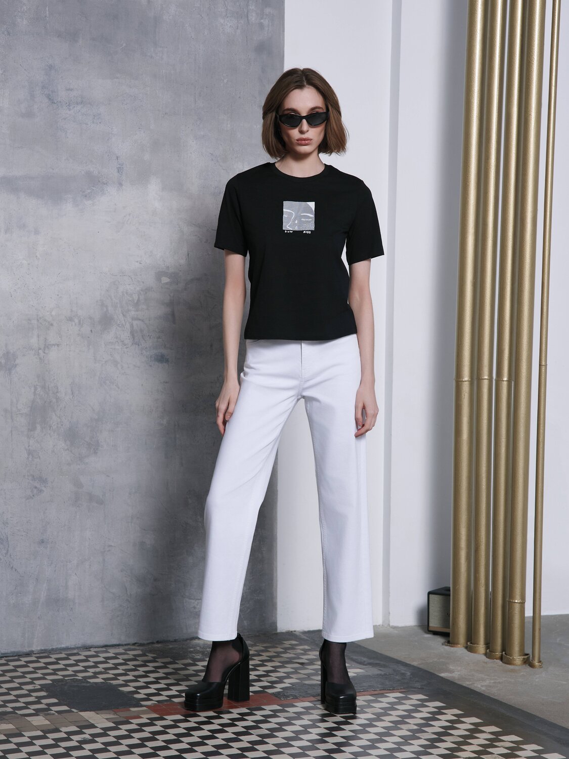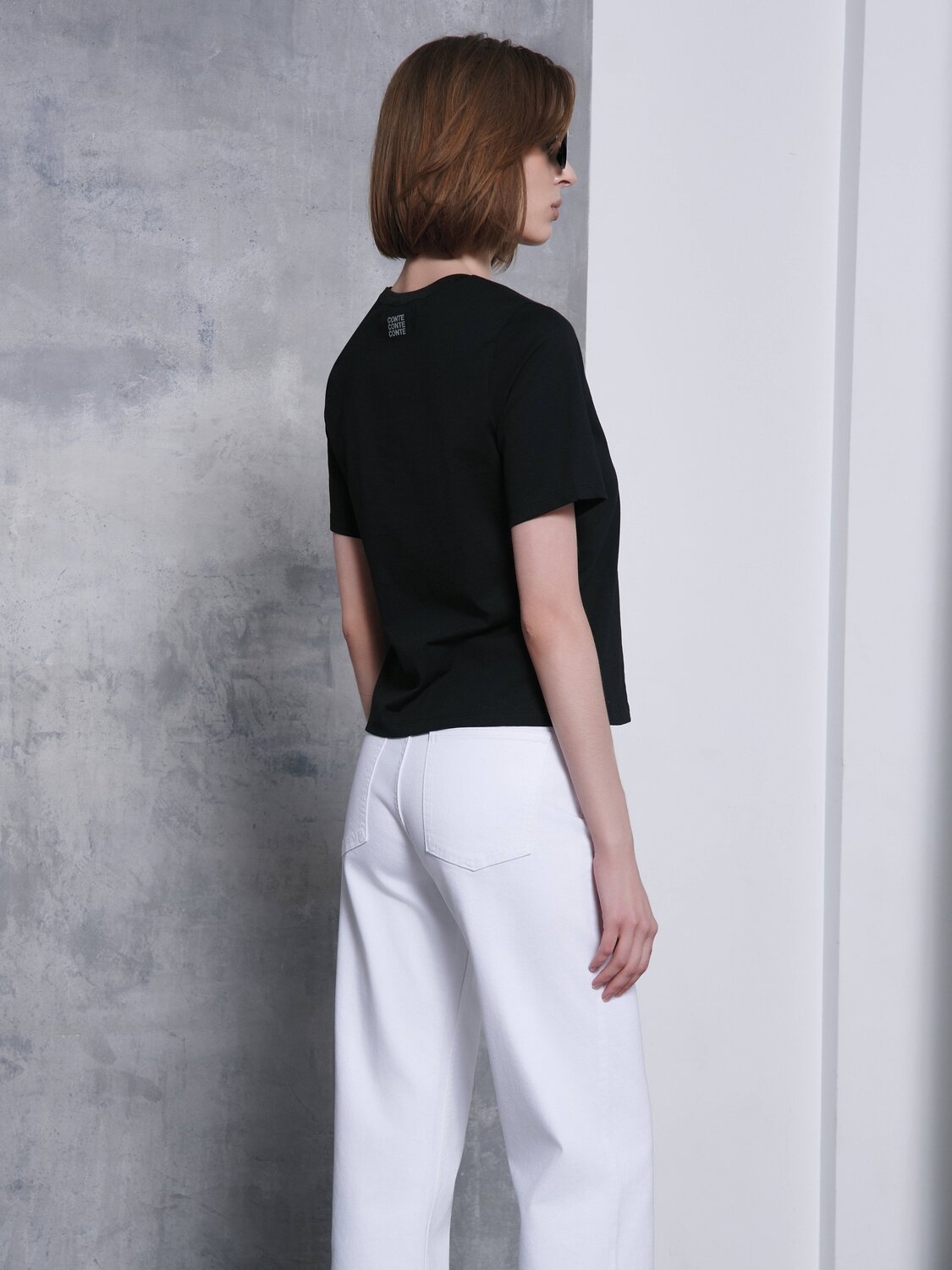 Футболка из хлопка станет основой для множества расслабленных базовых образов. • прямой крой• классическая длина• круглый вырез горловины с планкой• классическая линия плеч• короткие втачные рукава• мягкий и приятный к телу хлопок• по спинке - лаконичная печать с логотипом бренда• сохранение формы и цвета при соблюдении рекомендаций по уходу• безупречный стиль и абсолютная свобода в движениях• всегда приятно открывать новые грани в привычной вещи.