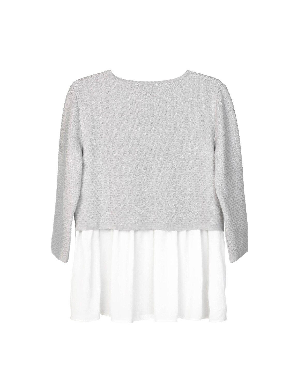 Джемпер прямого силуэта с рукавом длиной 3/4. Нежная вискозная пряжа дарит комфорт и свободу движения. Оригинальная отделка шелковистой тканью сзади создает романтический волнующий образ.