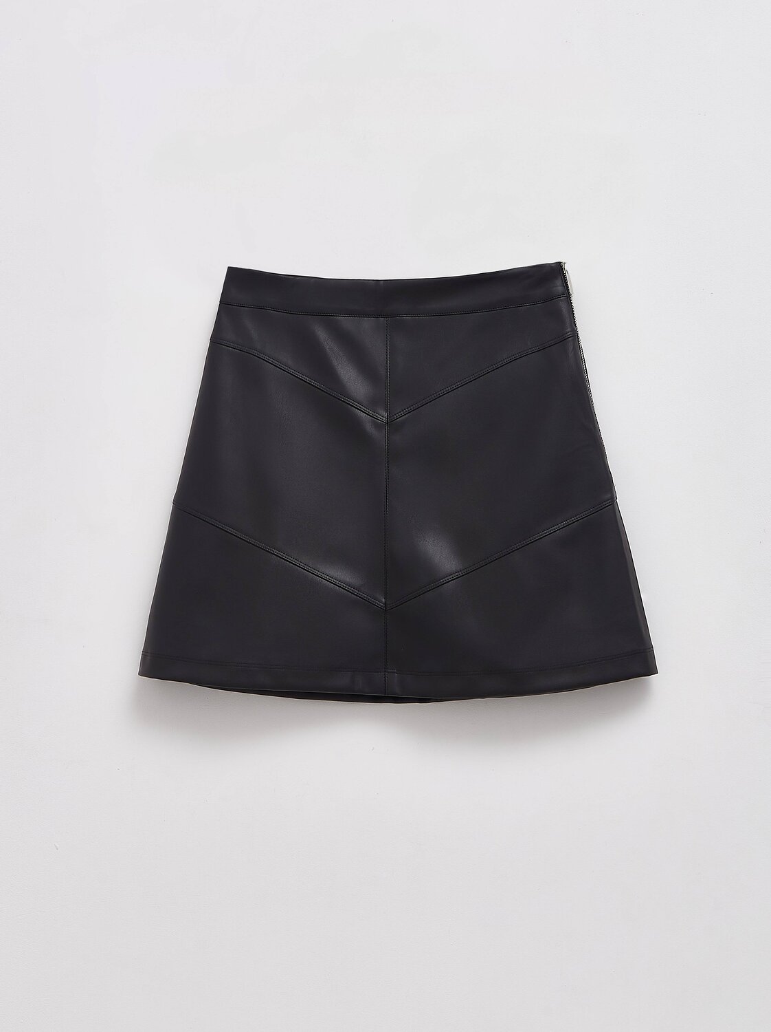 Юбка А-силуэта из экокожи создана для свободы самовыражения: эта модель легко встроится в повседневный гардероб, в случае необходимости отлично передаст слегка бунтарское настроение или поддержит стильный деловой образ в сочетании с рубашкой и жакетом. · высокая посадка на талии· притачной пояс· длина mini· А-силуэт· застежка на металлическую молнию в центральном шве спинки· по переду выполнены рельефные швы· искусственная полиуретановая экокожа · сохранение формы и цвета при соблюдении рекомендаций по уходу· создана для запоминающихся образов.