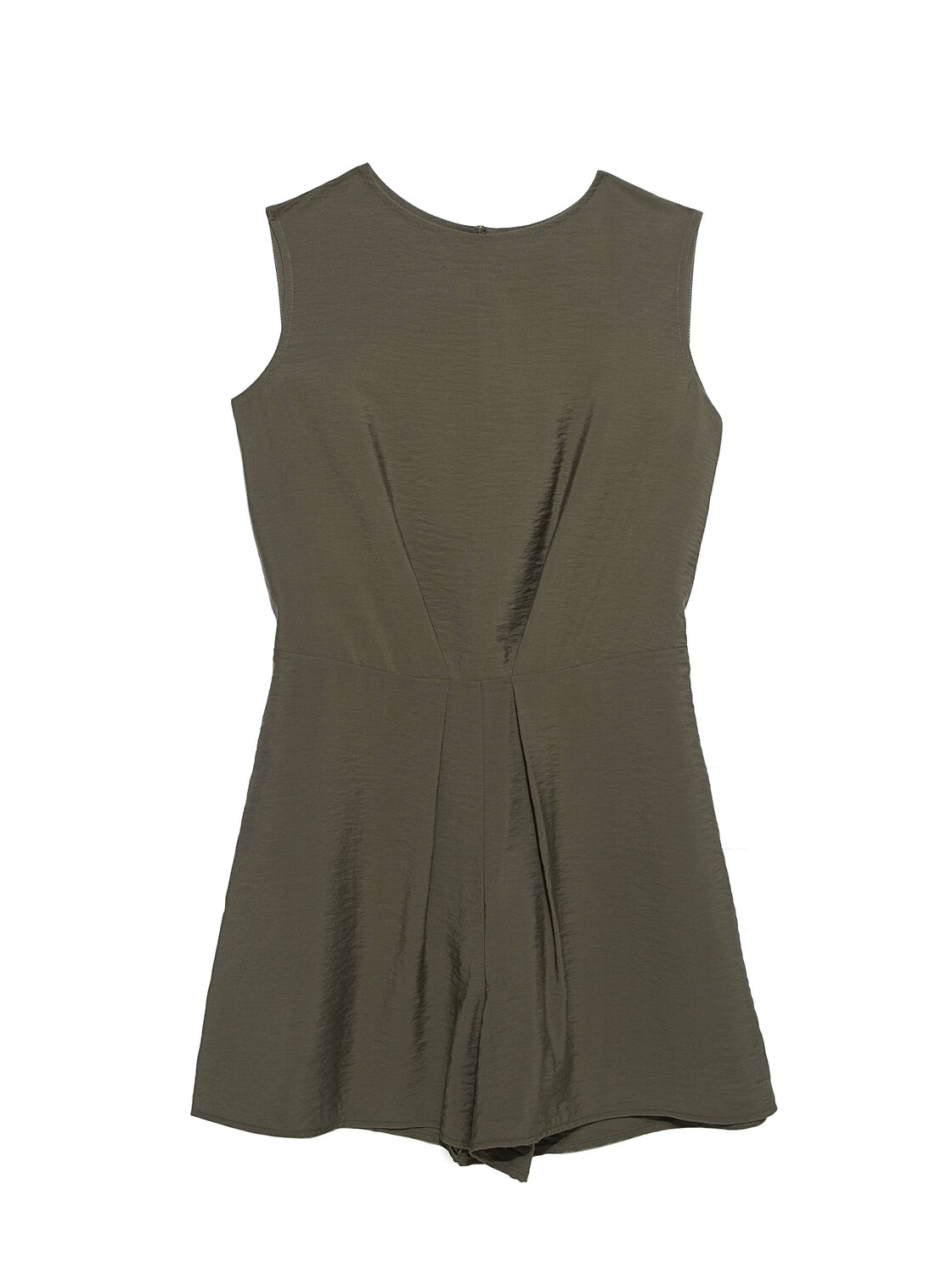 В этом ультрамодном полукомбинезоне гармонично переплетены основные тренды сезона: полуприлегающий крой, короткие шорты, актуальные цвета, декоративный пояс-завязка и мягкие складки спереди.