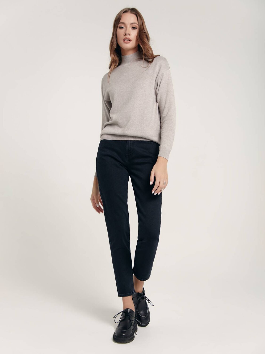 Джинсы подойдут девушкам с разными типами фигуры: благодаря высокой посадке и умеренно свободному модель отлично скрывает недостатки фигуры и помогает подчеркнуть талию.