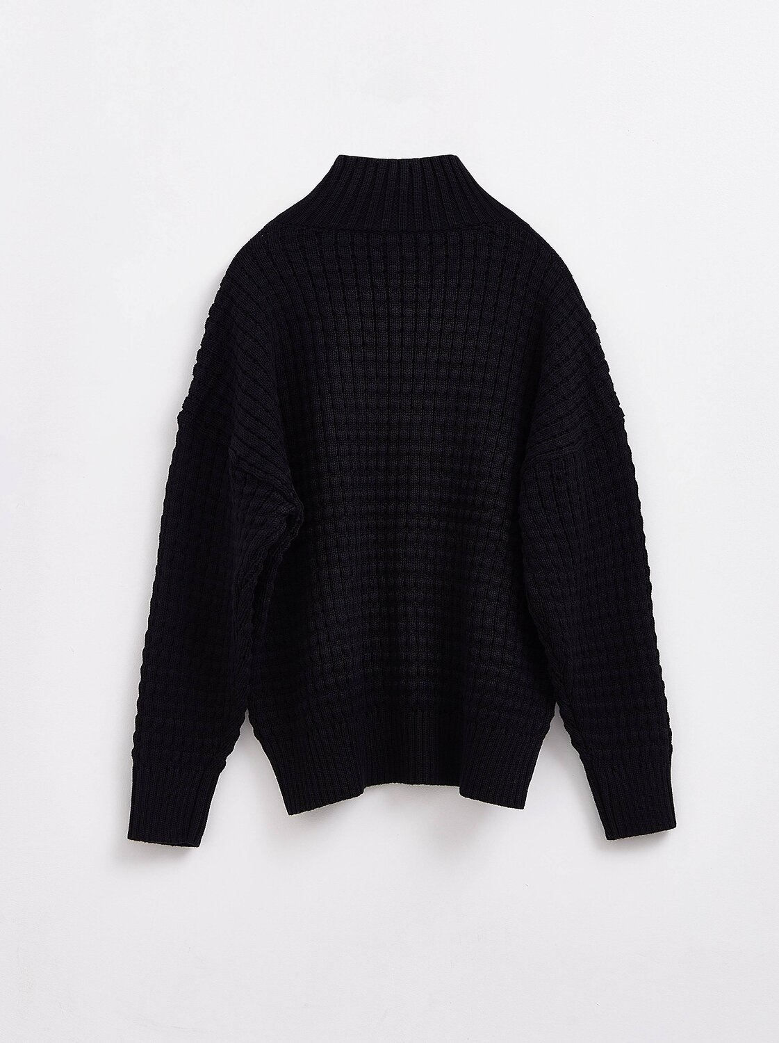 Фактурный джемпер с воротником-стойкой из пряжи с хлопком поможет создавать множество новых образов, не изменяя собственному стилю. Носите модель в повседневных образах, сочетая джемпер с денимом, леггинсами, брюками и юбками.