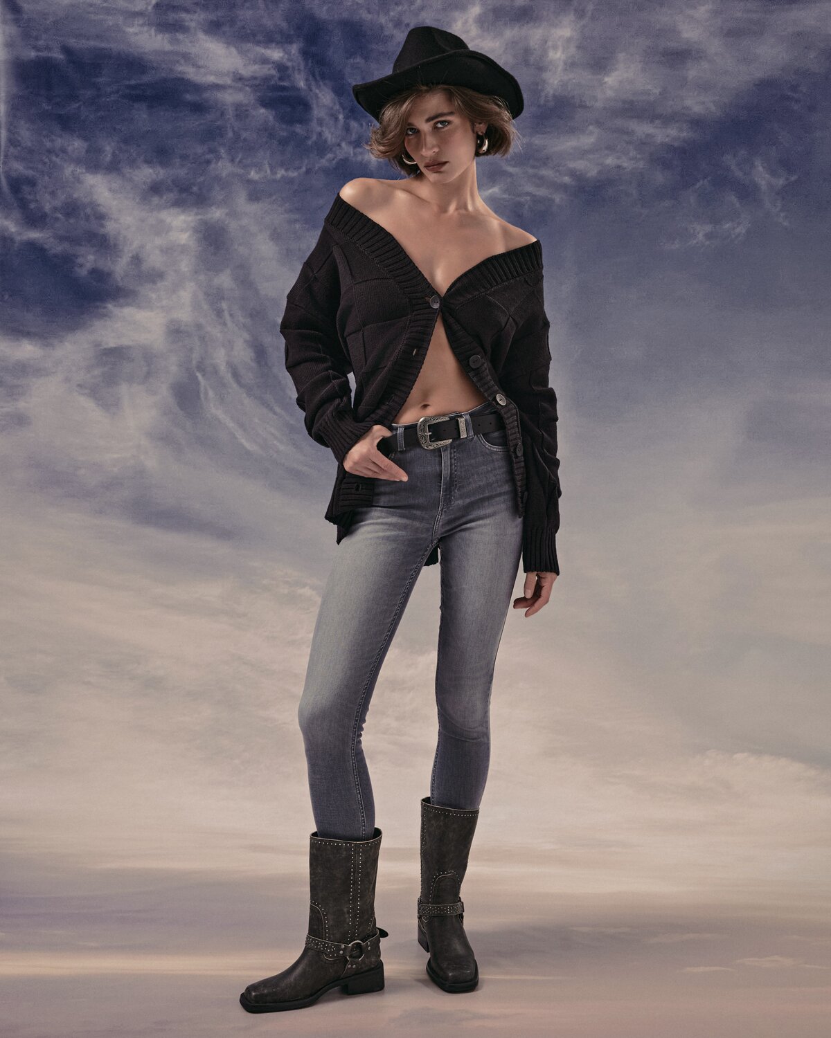 "Выбирая джинсы skinny для нового сезона, сделайте ставку на трендовые детали: глубокий серо-голубой оттенок денима и эффект потертости.