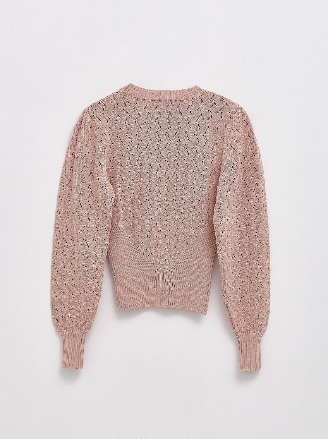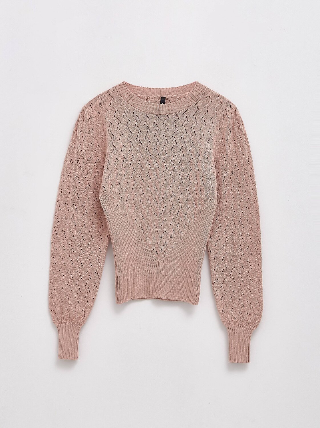 Джемпер с ажурным узором из пряжи с хлопком – это комфортная модель для индивидуальных повседневных образов.