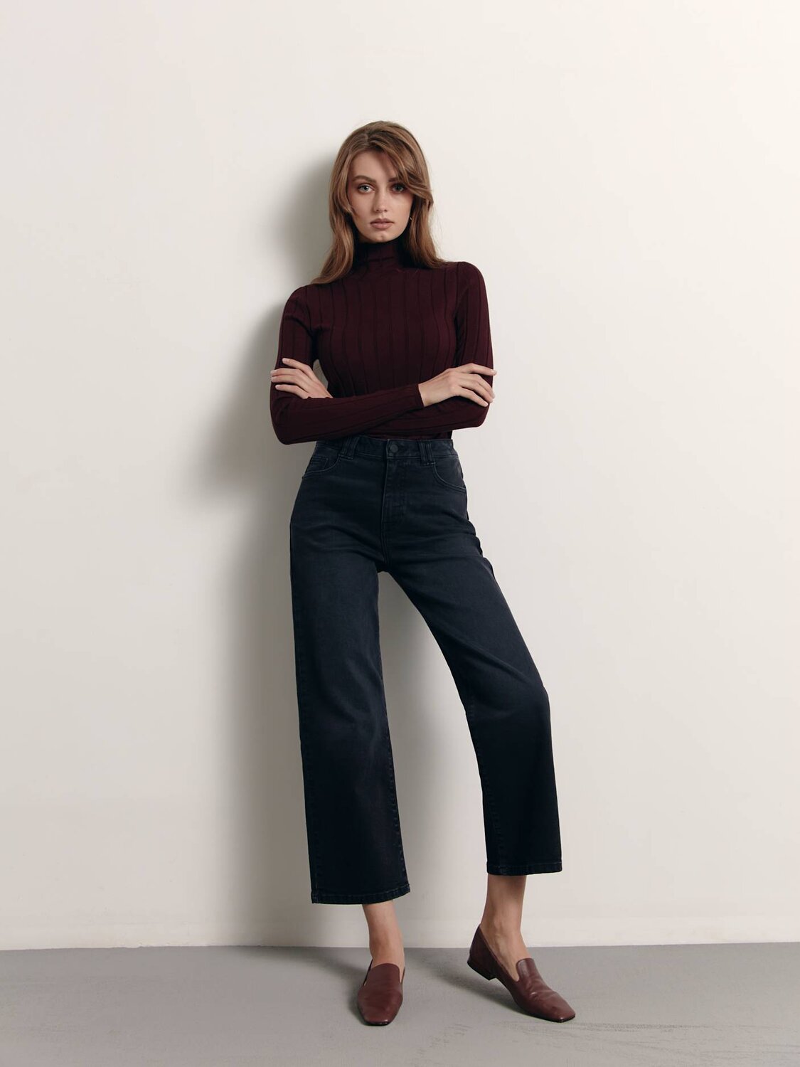 Широкие джинсы wide leg с высокой посадкой CON-367 удачно скрывают и корректируют недостатки фигуры, визуально удлиняя силуэт.