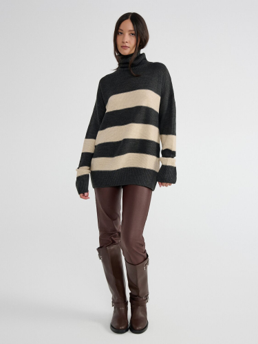 Джемпер объемного силуэта из пряжи с хлопком поможет легко создавать образы в разных стилях: от casual в сочетании с денимом до деловых аутфитов с классическими брюками и юбками.